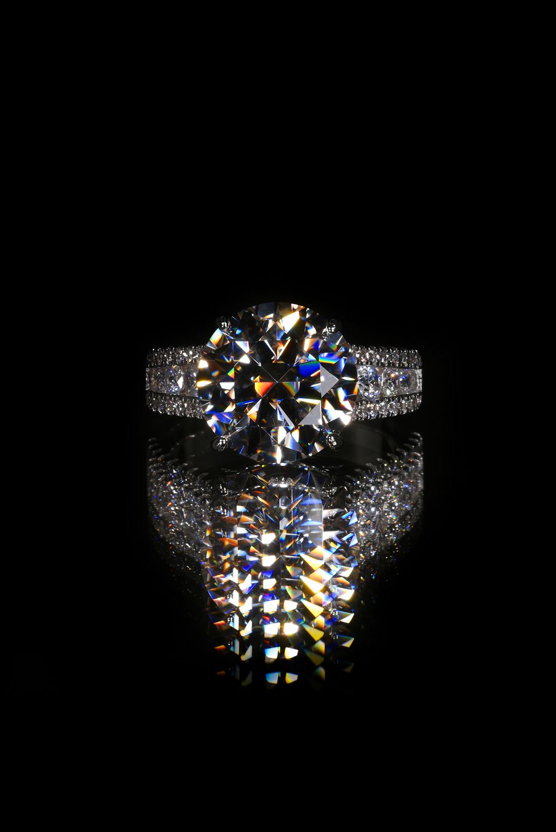 Round brilliant άχρωμος μοϊσανίτης δεμένος σε σκελετό από ασήμι 925. GM: 8.09 CRT 10 Πιστοποίηση GRA