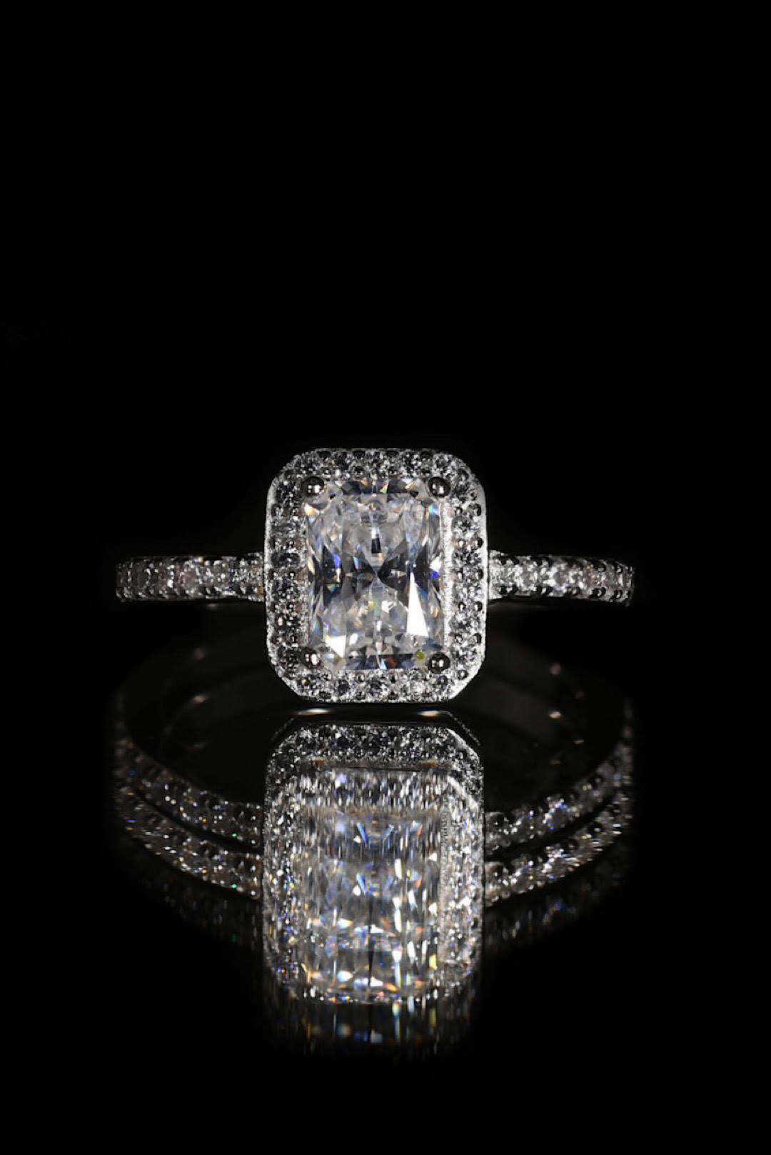Baguette άχρωμος μοϊσανίτης δεμένος σε σκελετό από ασήμι 925. GM: 2.55 CRT 1.00 Πιστοποίηση GRA