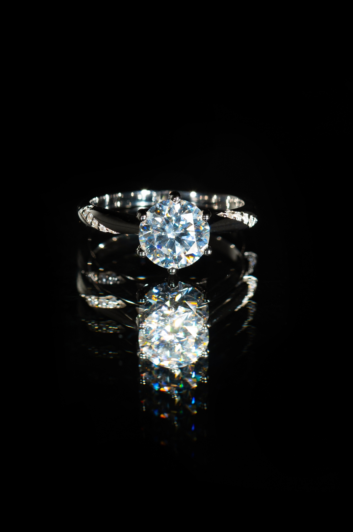 Round brilliant μοισανίτης με μικρότερους μοισανίτες που διακοσμούν τα πλαϊνά δεμένα σε σκελετό απο ασήμι 925
