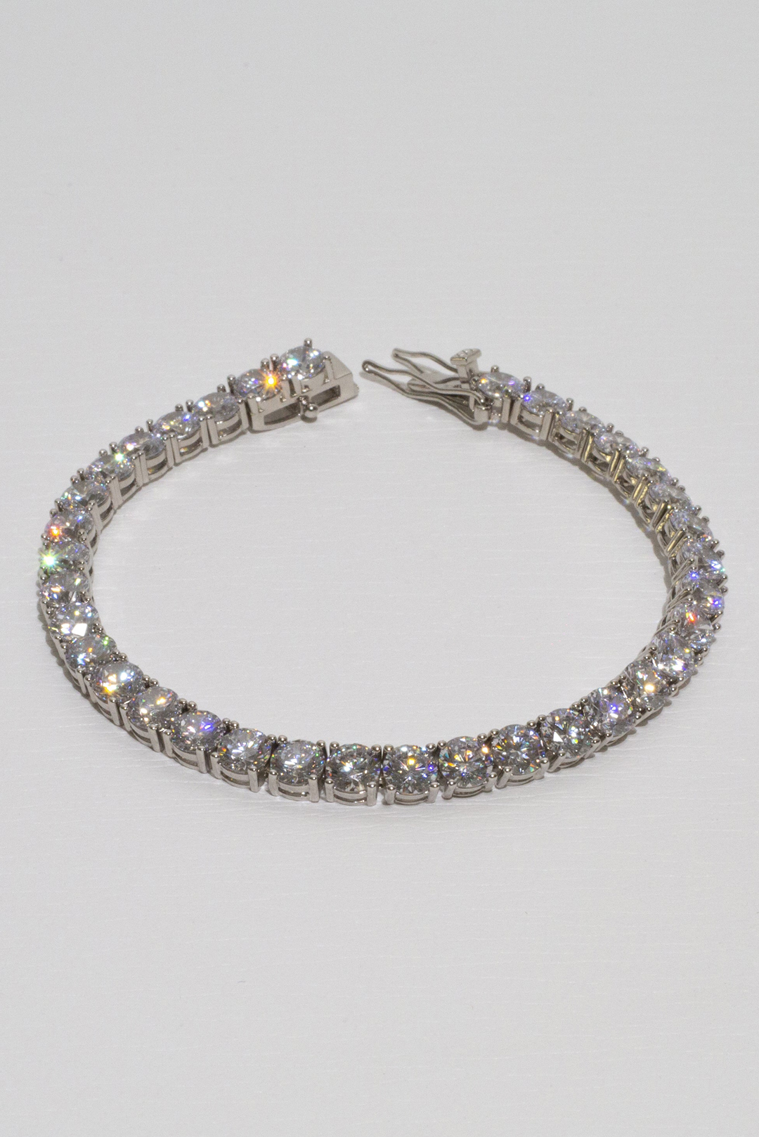 Βραχιόλι τένις στρογγυλής κοπής ζιργκόν άχρωμο με επιμετάλλωση ροδίου. GM: 15 MM: 6