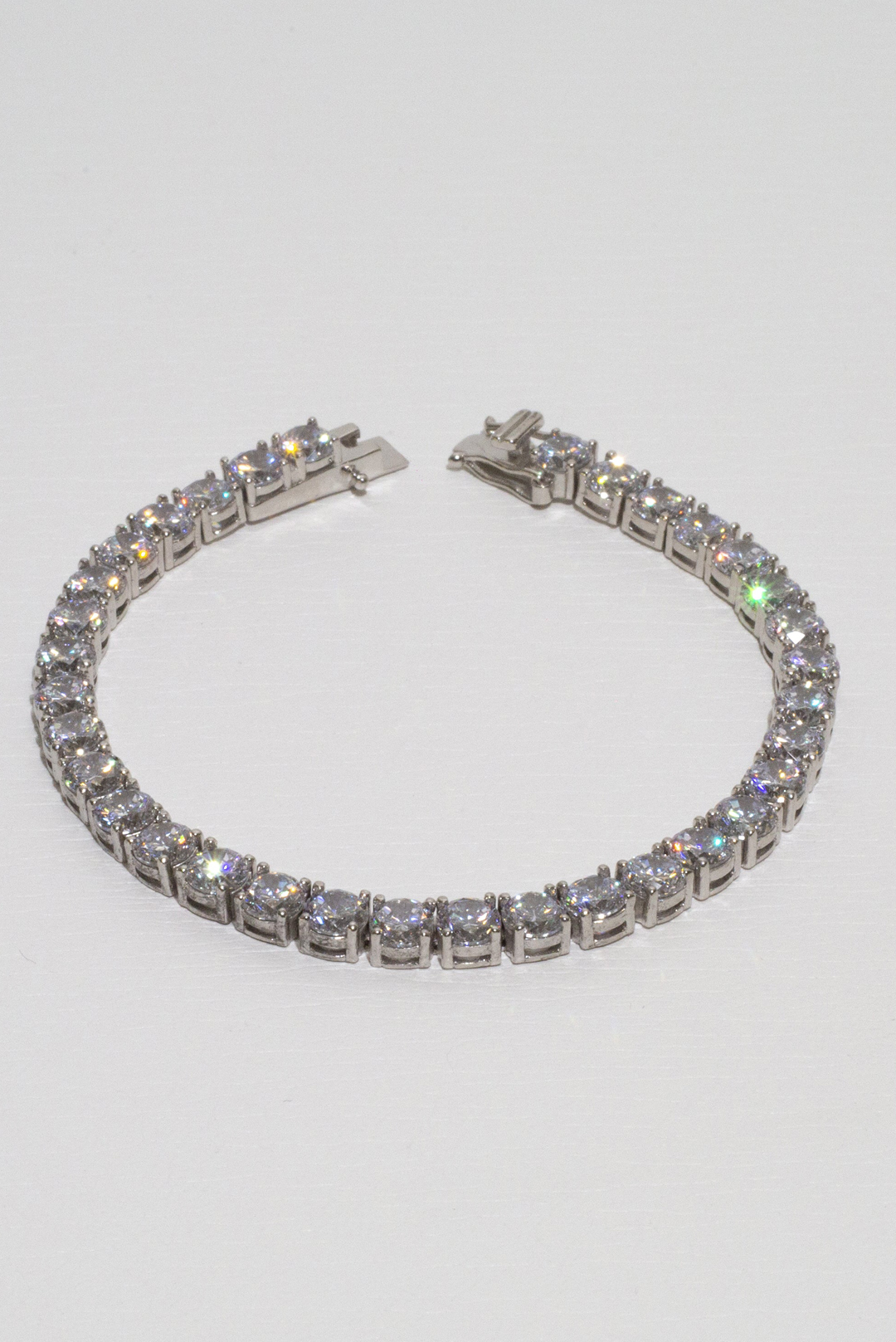 Βραχιόλι τένις στρογγυλής κοπής ζιργκόν άχρωμο με επιμετάλλωση ροδίου. GM: 19,40 ΜΜ: 4