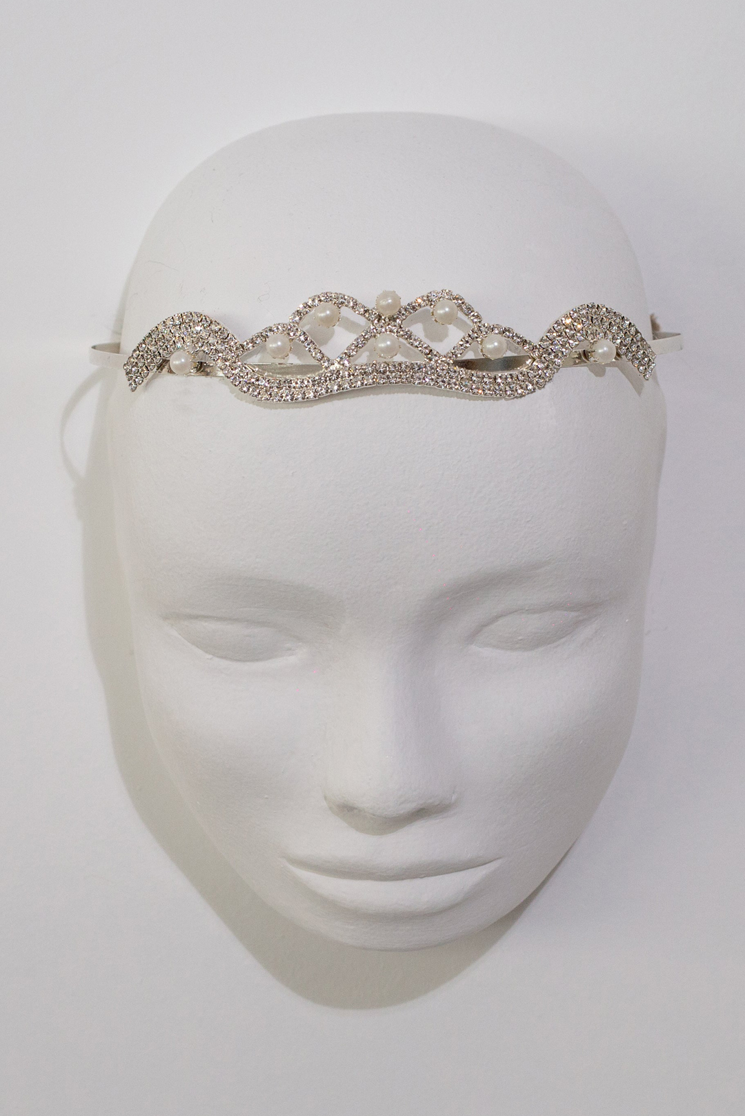 Ζιργκόν hairband με διάφανα κρύσταλλα και πέρλες σε ασημί σμάλτο.
