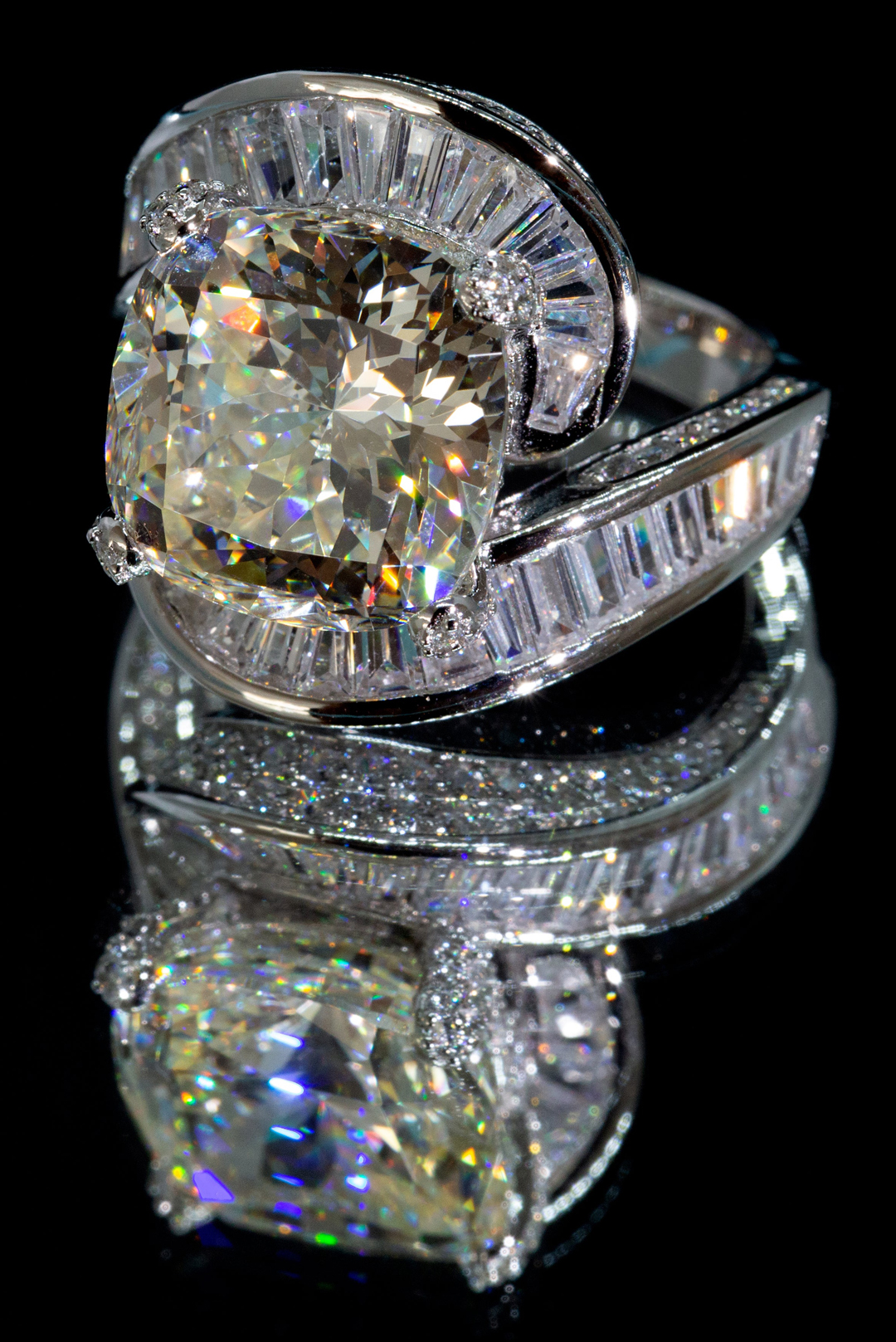 Radiant άχρωμος μοϊσανίτης διακοσμημένος σε pave σχέδιο με μικρότερους μοϊσανιτες στα πλαϊνά δεμένο σε σκελετό από ασήμι 925. GM: 9,16 Καράτια Βάρος: 5.00