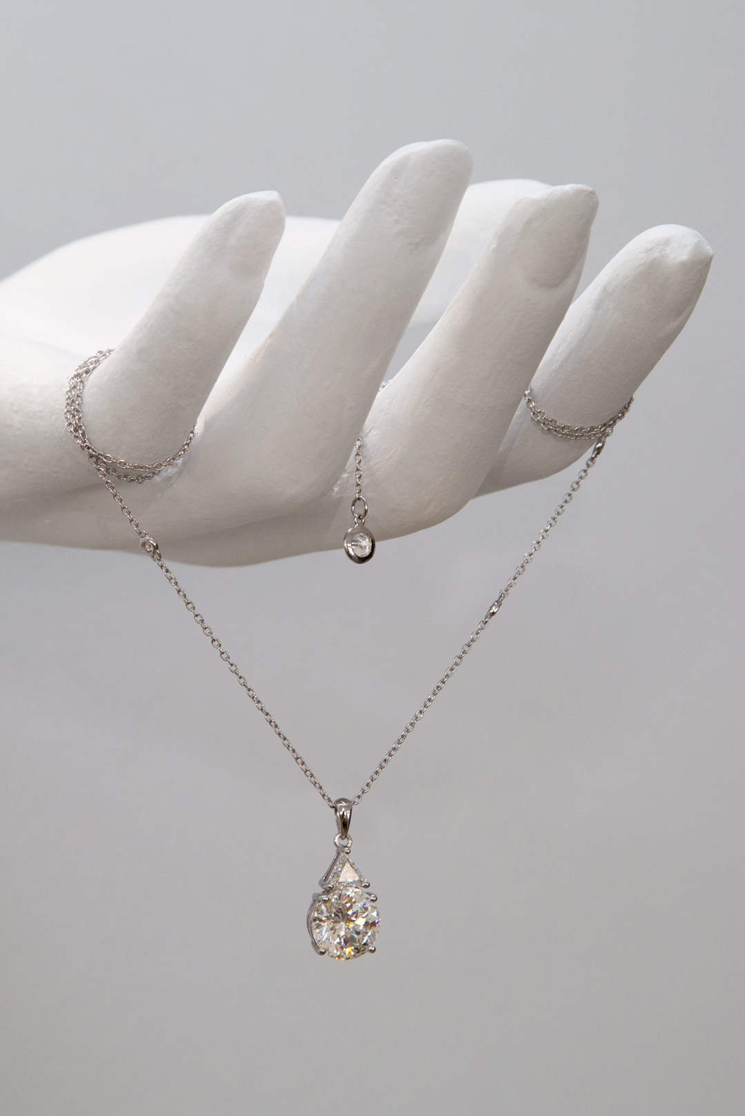 Round άχρωμο κολιέ μοϊσανίτη δεμένο σε σκελετό από ασήμι 925. GM: 4,62 Καράτια Βάρος: 3,50