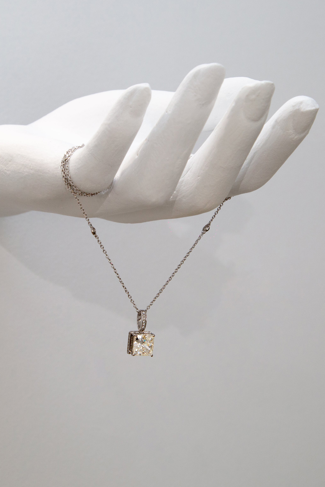 Square άχρωμο κολιέ μοϊσανίτη δεμένο σε σκελετό από ασήμι 925. GM: 3,48 Καράτια Βάρος: 3,50