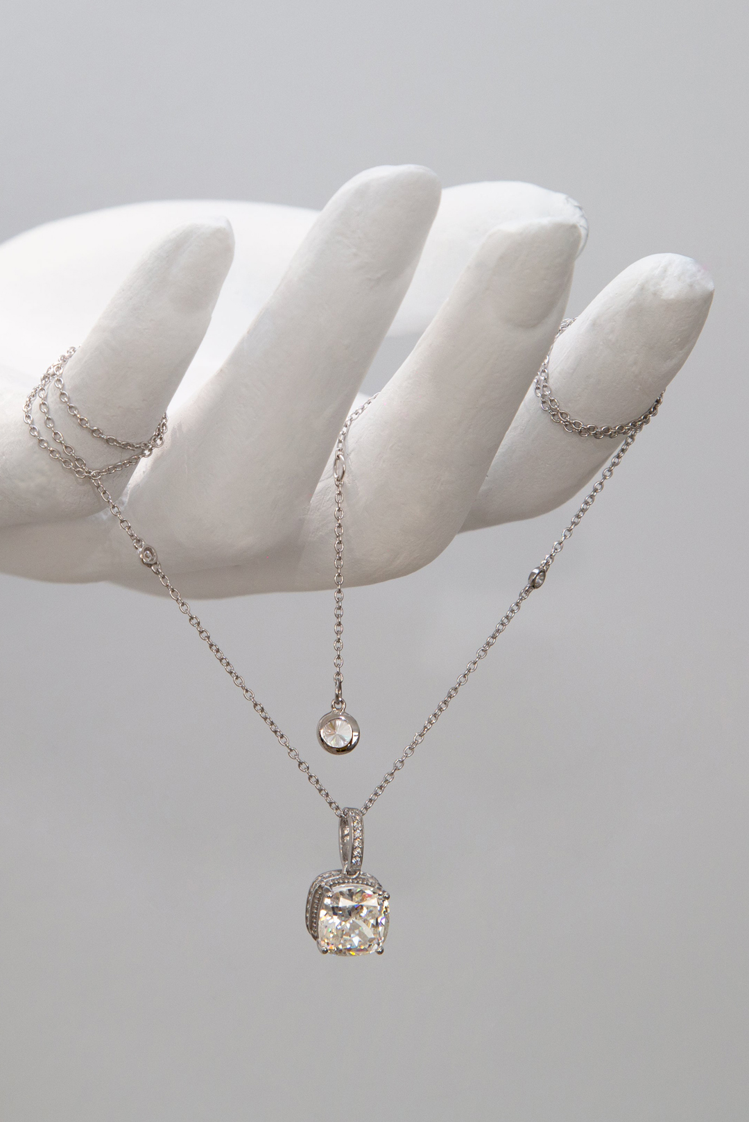 Square brilliant άχρωμο κολιέ μοϊσανίτη δεμένο σε σκελετό από ασήμι 925. GM: 4,14 Καράτια Βάρος: 3.00