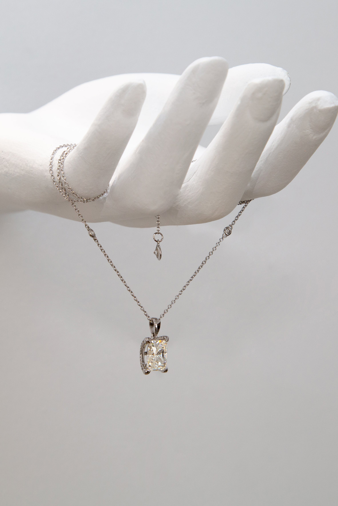 Radiant άχρωμο κολιέ μοϊσανίτη δεμένο σε σκελετό από ασήμι 925. GM: 4,20 Καράτια Βάρος: 3.50