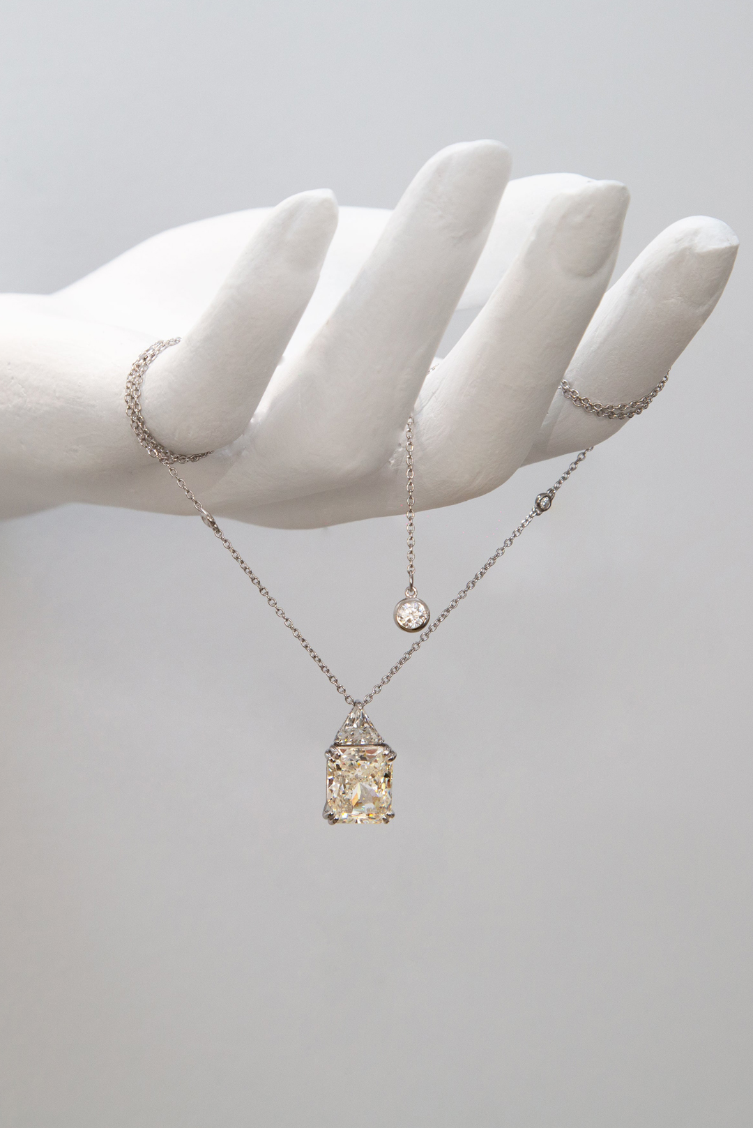Radiant άχρωμο κολιέ μοϊσανίτη διακοσμημένο σε pave σχέδιο με μικρότερους μοϊσανιτες στα πλαϊνά δεμένο σε σκελετό από ασήμι 925. GM: 4,62 Καράτια Βάρος: 3.50
