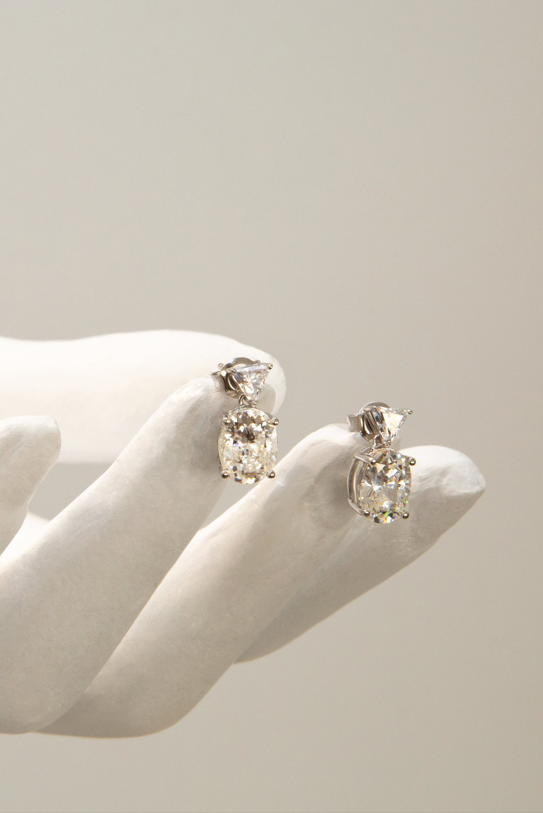 Round brilliant άχρωμα σκουλαρίκια μοϊσανίτη, σε σκελετό από ασήμι 925. GM: 3,15 Καράτια Βάρος: 2,00