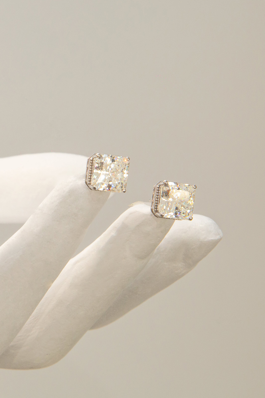Square brilliant άχρωμα σκουλαρίκια μοϊσανίτη δεμένα σε σκελετό από ασήμι 925. GM: 5,50 Καράτια Βάρος: 2,50