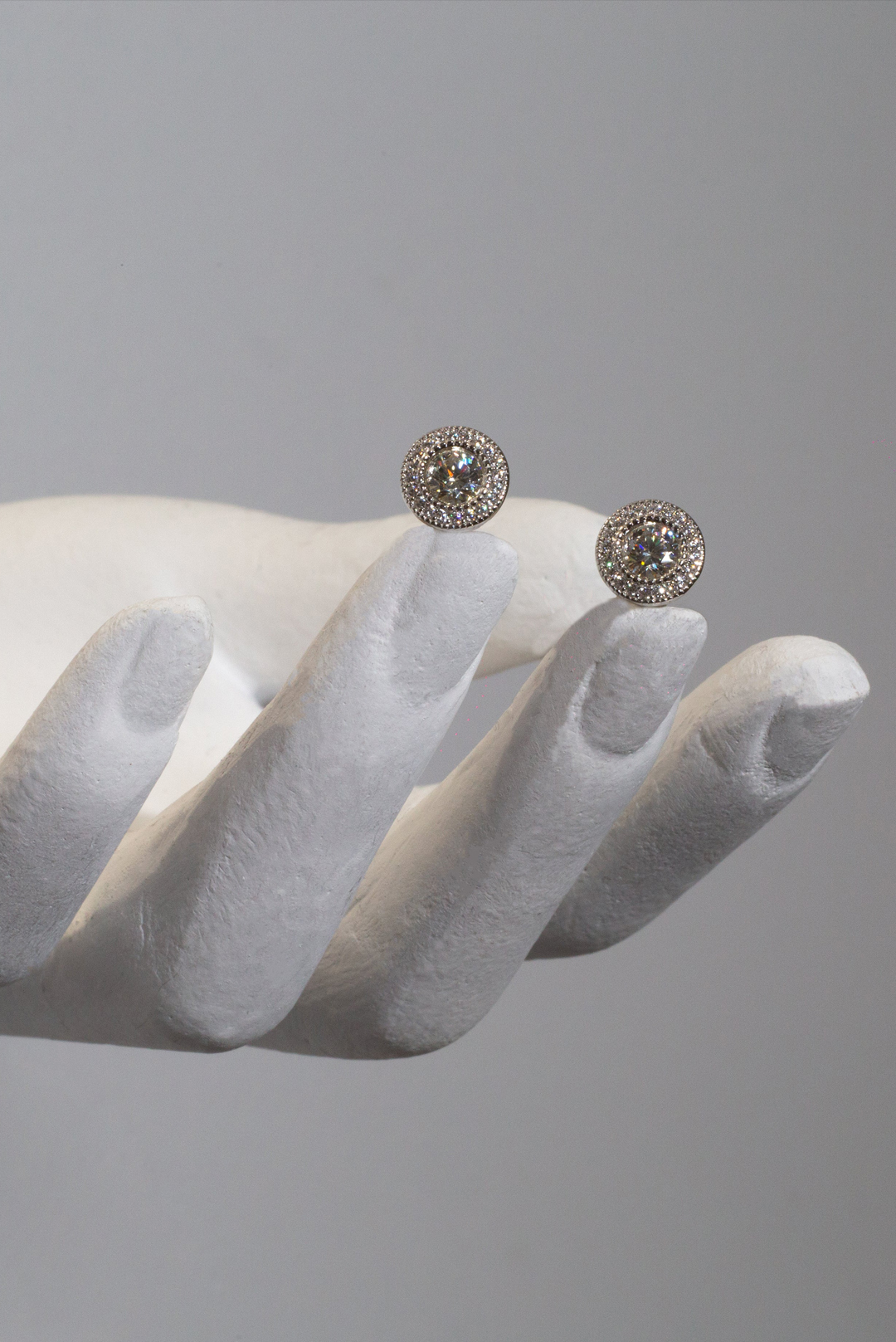 Round άχρωμα σκουλαρίκια μοϊσανίτη δεμένα σε σκελετό από ασήμι 925. GM: 2,40 Καράτια Βάρος: 3.00