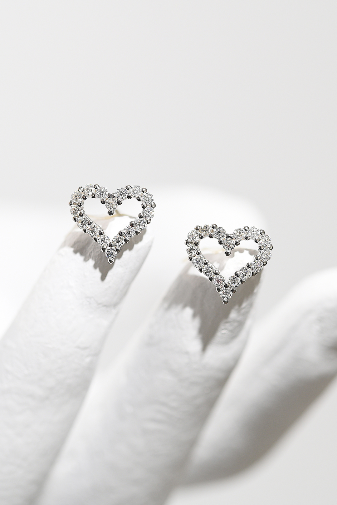 Round brilliant άχρωμα σκουλαρίκια μοϊσανίτη διακοσμημένα σε σχήμα καρδιάς δεμένα σε σκελετό από ασήμι 925. GM: 1,60 Καράτια Βάρος: 1,00