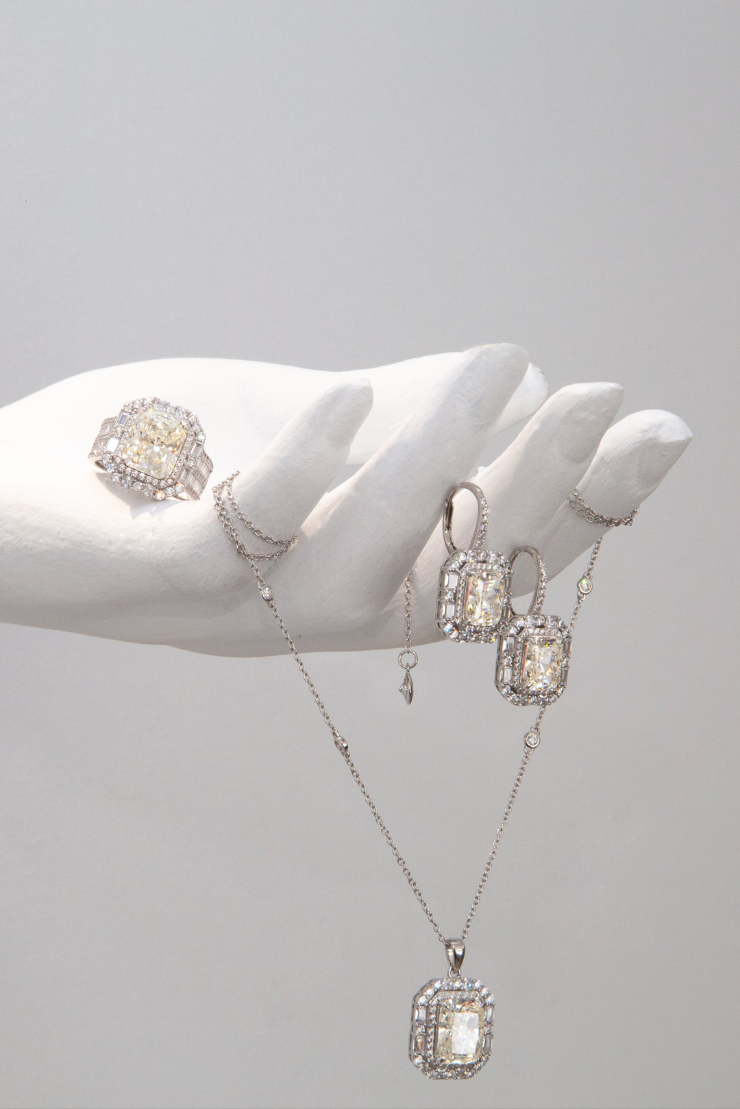 Round άχρωμος μοϊσανίτης διακοσμημένος σε pave σχέδιο με μικρότερους μοϊσανιτες στα πλαϊνά δεμένο σε σκελετό από ασήμι 925. GM: 24,57 Καράτια Βάρος: 6.00