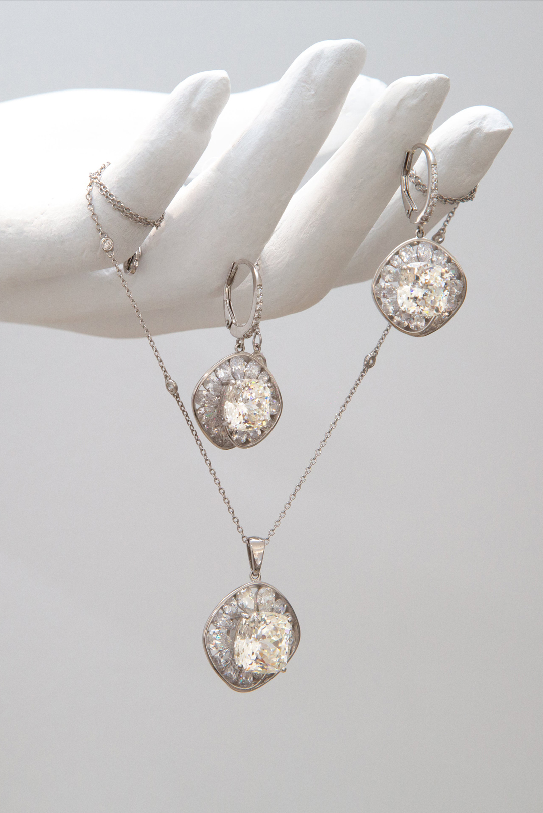 Square άχρωμος μοϊσανίτης διακοσμημένος σε pave σχέδιο με μικρότερους μοϊσανιτες στα πλαϊνά δεμένο σε σκελετό από ασήμι 925. GM: 22 καράτια Βάρος: 4.00