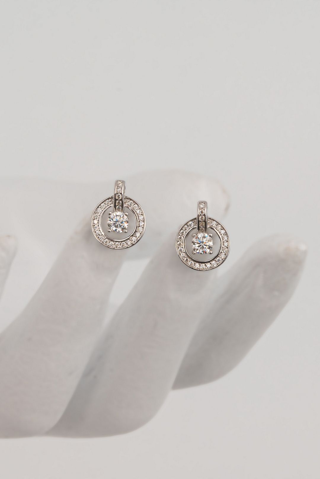 Round brilliant άχρωμα σκουλαρίκια μοίσανίτη σε σκελετό από ασήμι 925. GM: 1.25 Καράτια Βάρος: 1.00 GRA Certified