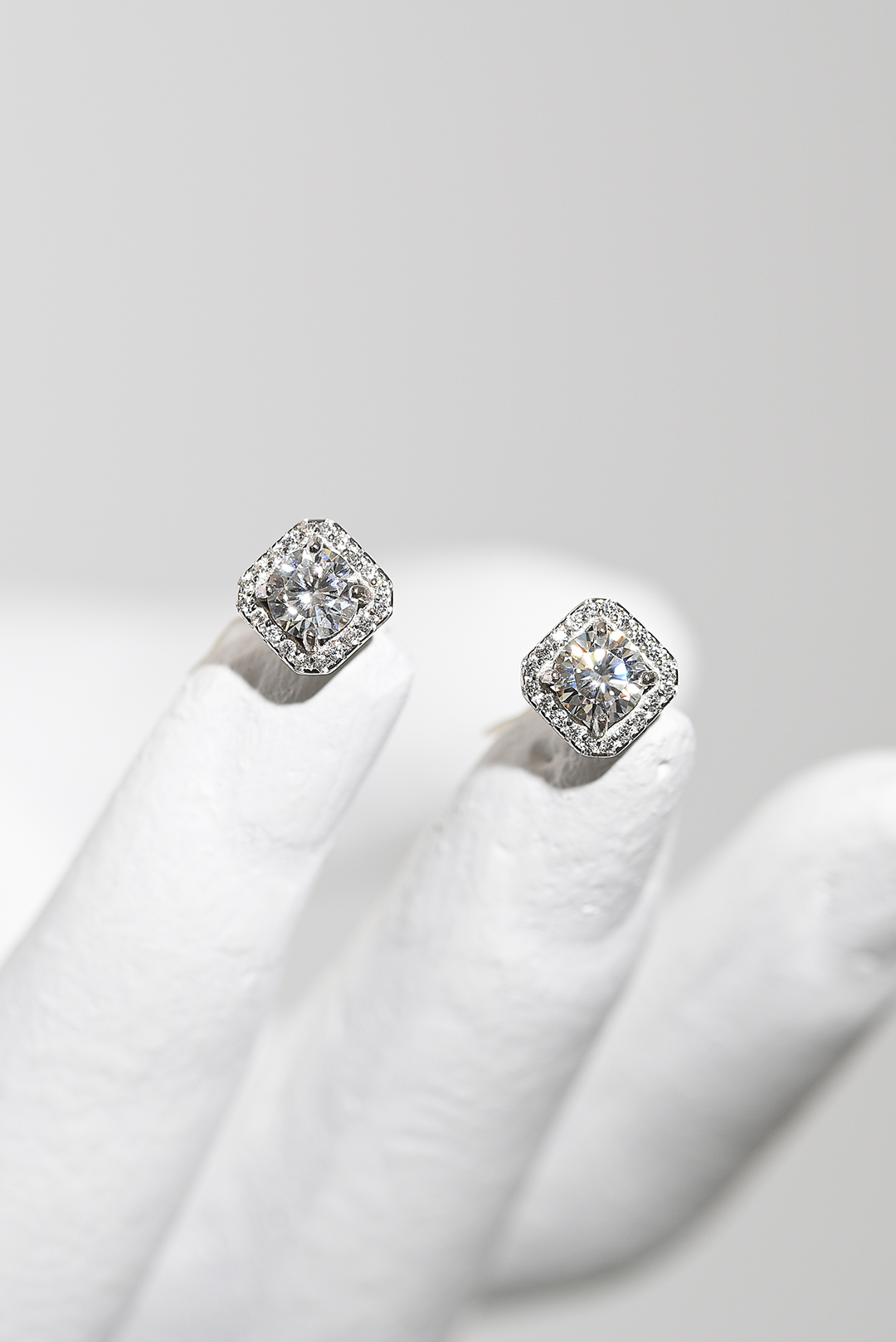 Round brilliant άχρωμα σκουλαρίκια μοϊσανίτη δεμένα σε σκελετό από ασήμι 925. GM: 1.9 Καράτια Βάρος: 1.00 GRA Certified