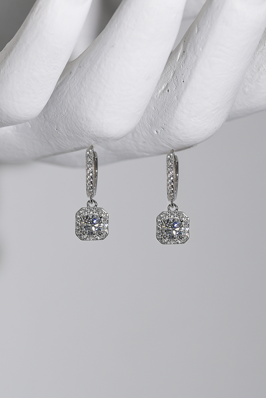 Round brilliant άχρωμα σκουλαρίκια μοϊσανίτη δεμένα σε σκελετό από ασήμι 925. GM: 2.67 Καράτια Βάρος: 1.00 GRA Certified
