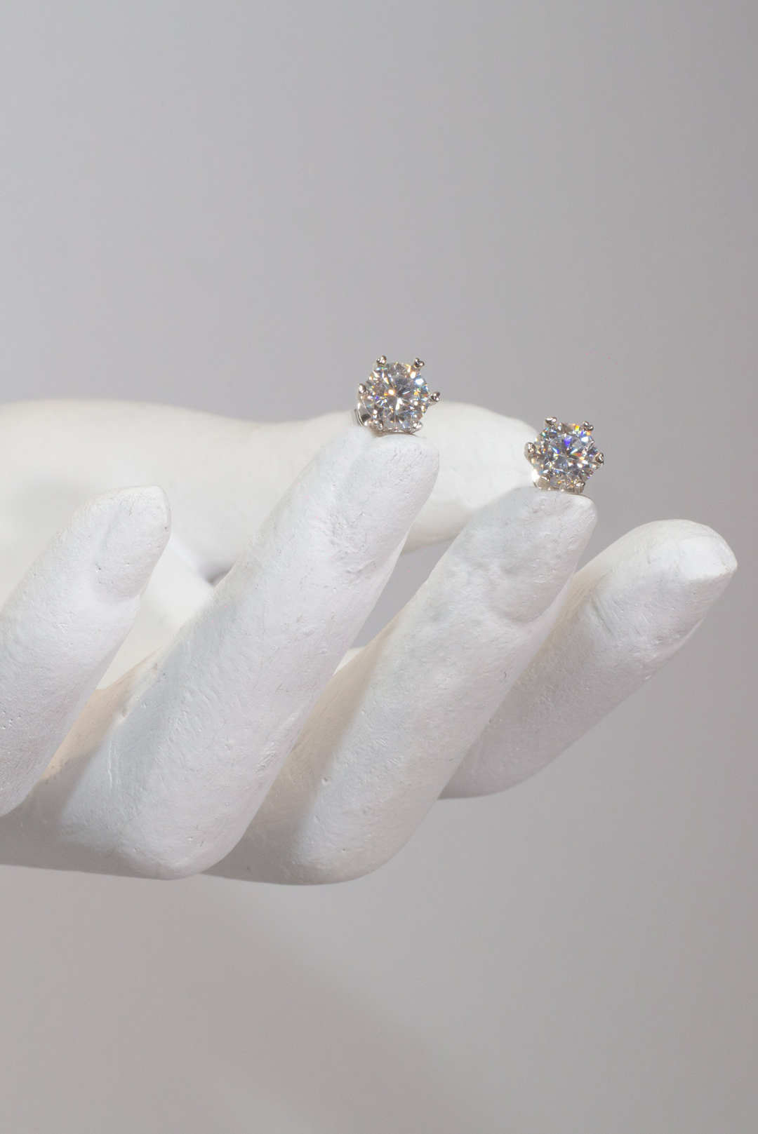 Round άχρωμα σκουλαρίκια μοϊσανίτη δεμένα σε σκελετό από ασήμι 925. GM: 1,90 Καράτια Βάρος: 2,00 Πιστοποίηση GRA