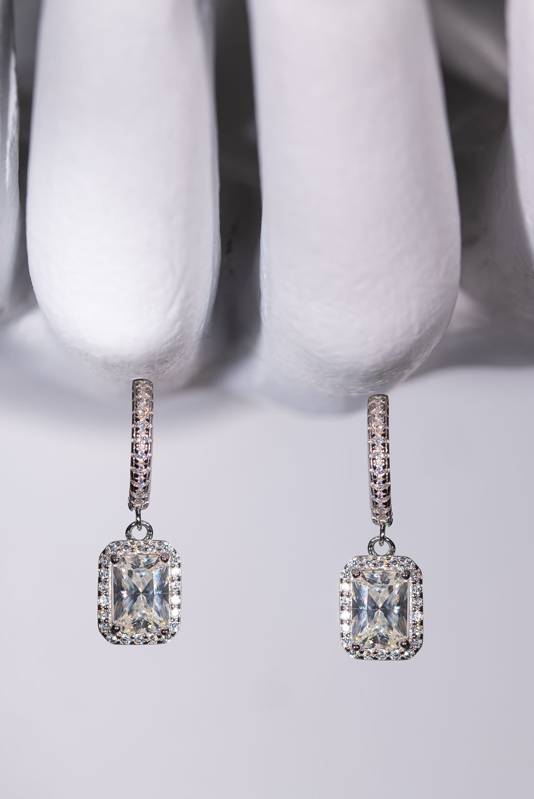 Baguettes άχρωμα σκουλαρίκια μοίσανίτη σε σκελετό από ασήμι 925. GM: 1.75 Καράτια Βάρος: 2.00 GRA Certified