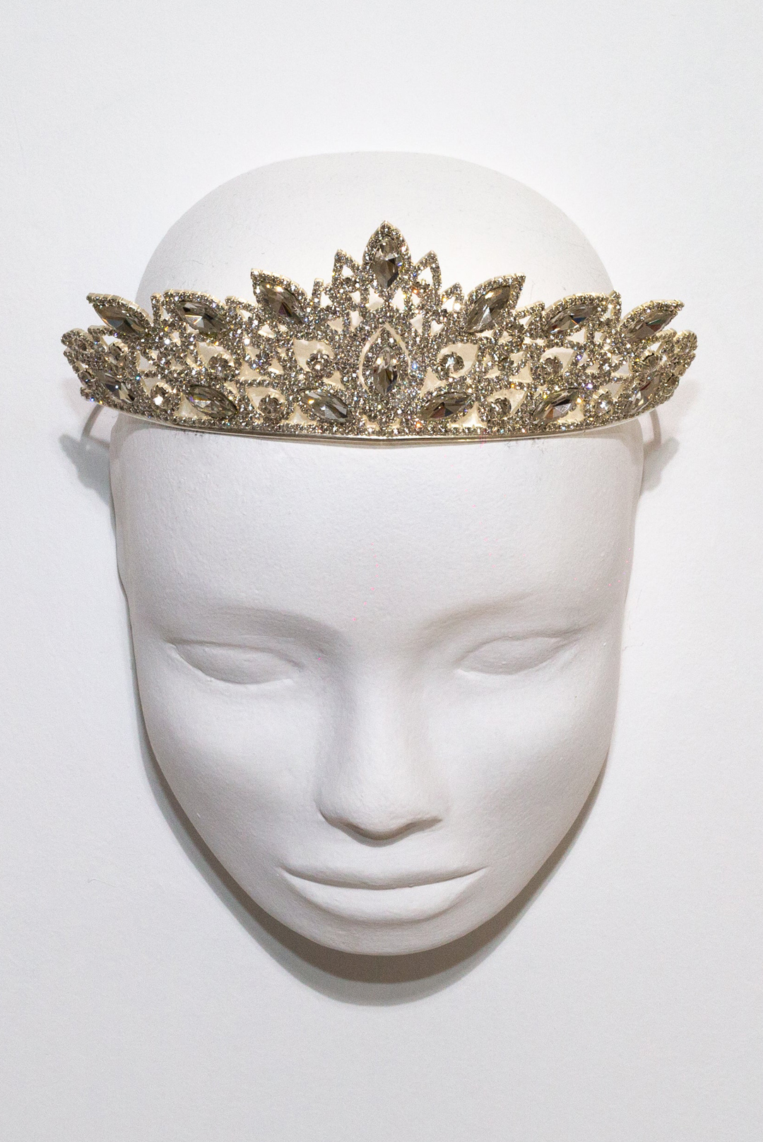 Κοντή χειροποίητη τιάρα με διάφανα κρύσταλλα σε ασημί σμάλτο.