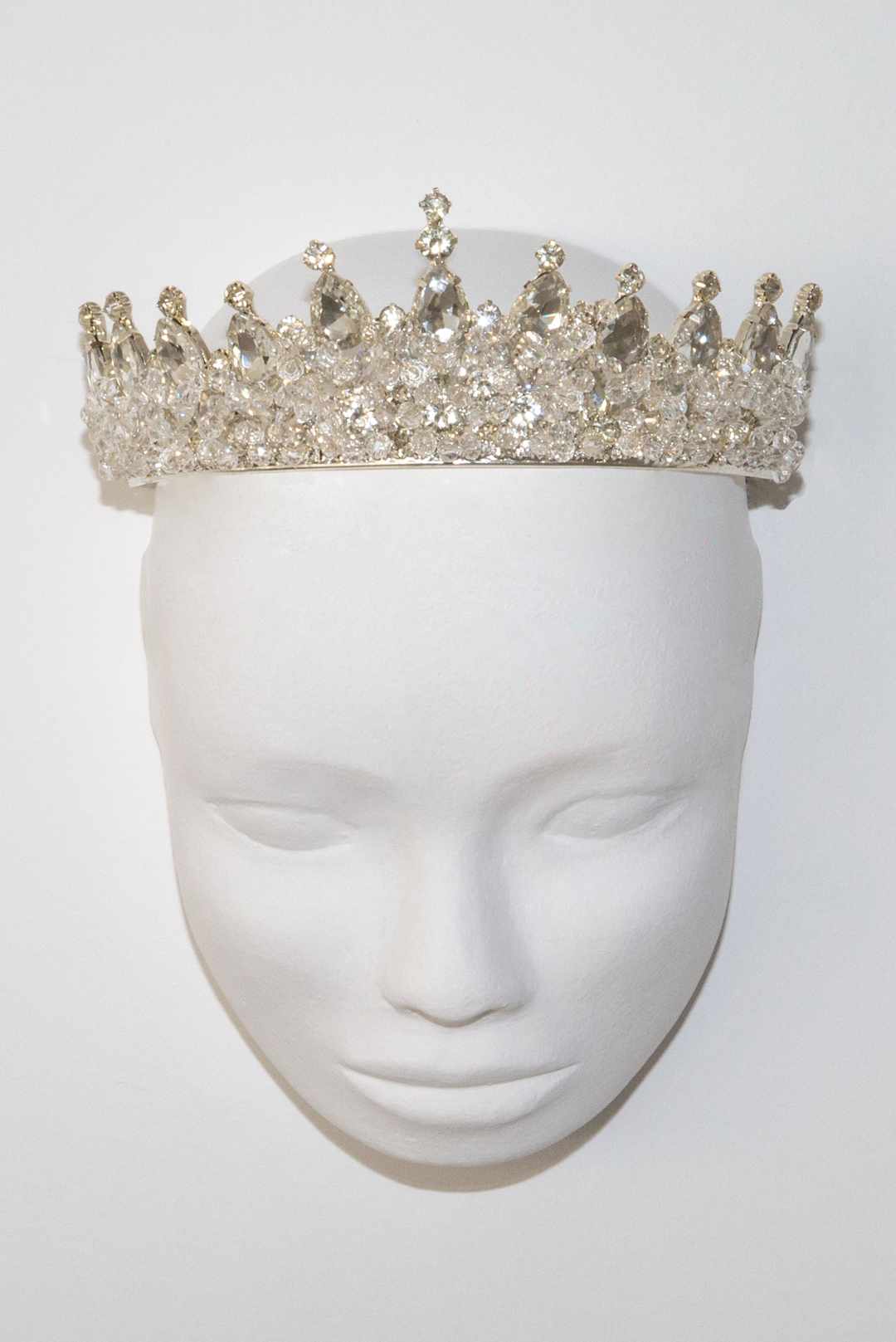 Χειροποίητη τιάρα μεσαίου μεγέθους με διάφανα κρύσταλλα σε ασημί σμάλτο.