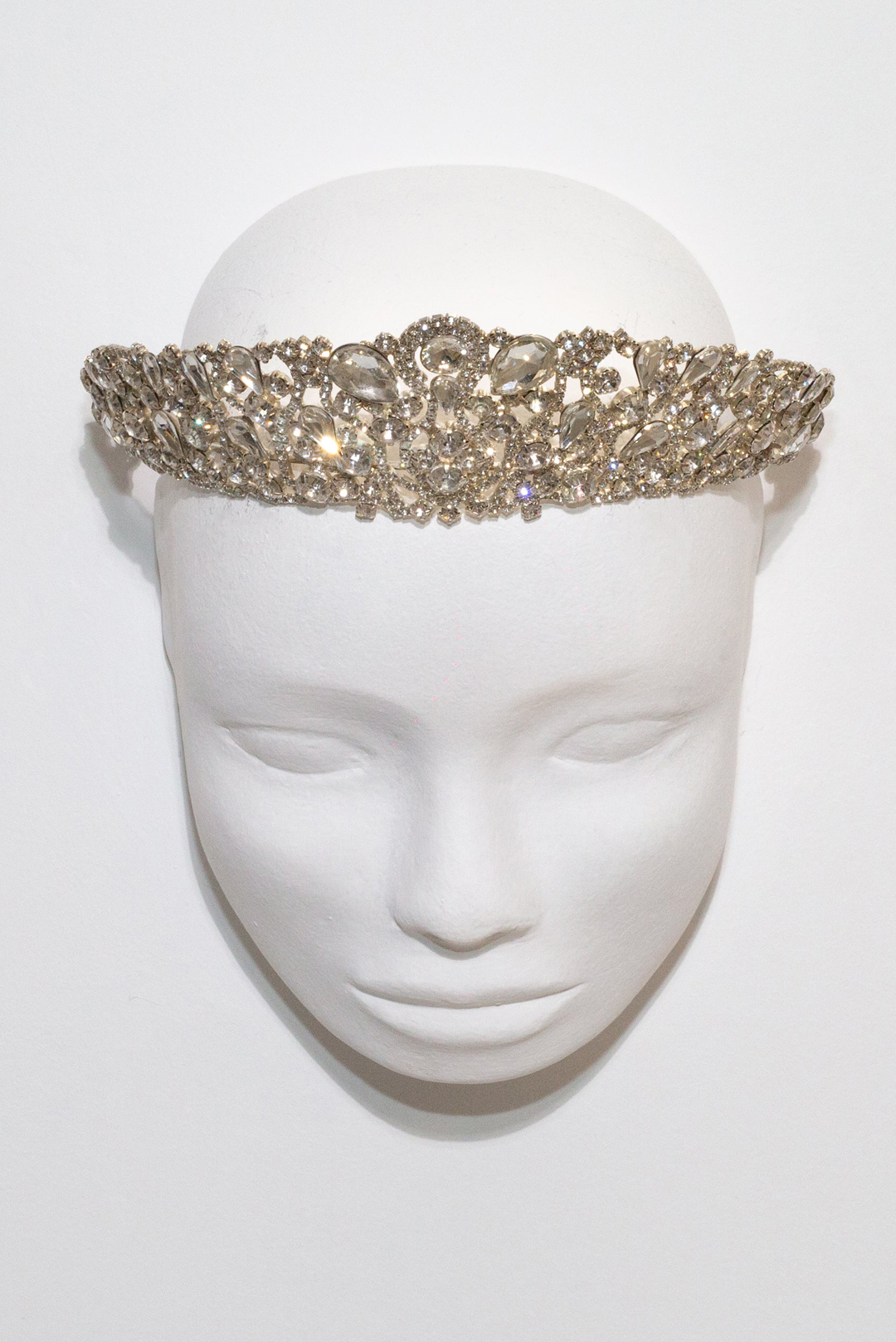 Ψηλή χειροποίητη τιάρα με διάφανα κρύσταλλα σε ασημί σμάλτο.