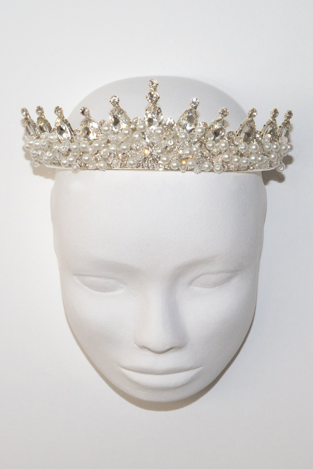 Χειροποίητη τιάρα μεσαίου μεγέθους με διάφανο και αδιάφανο κρύσταλλο σε ασημί σμάλτο.