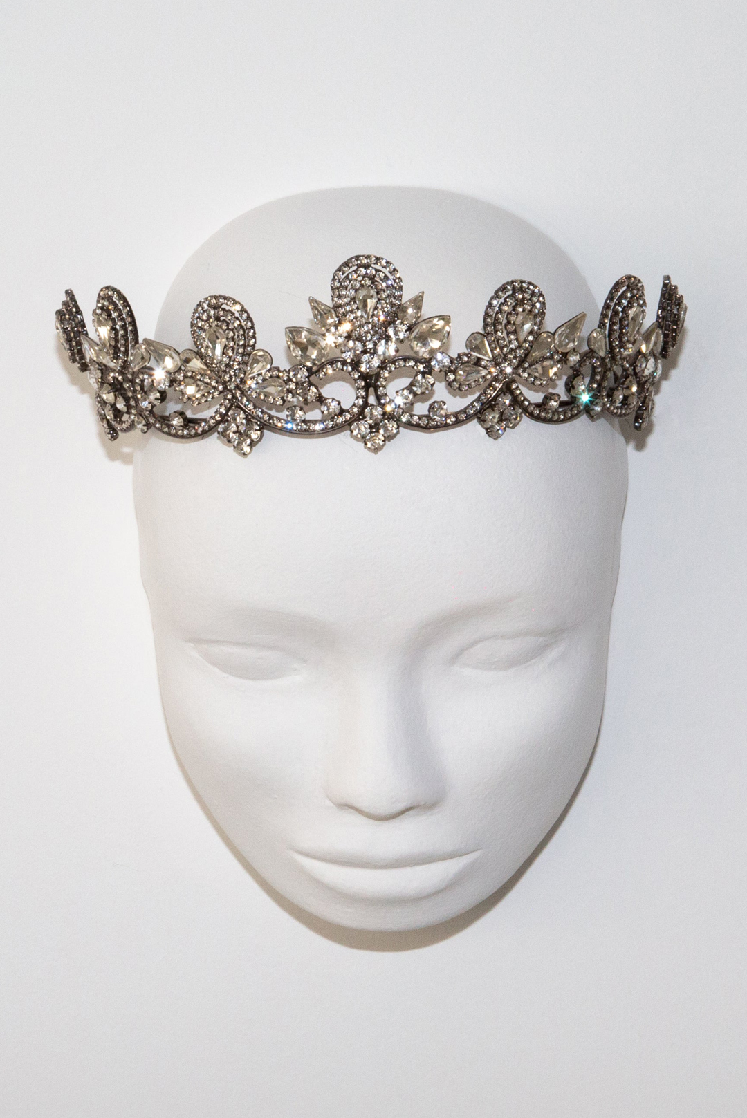 Μεσαία χειροποίητη τιάρα με διάφανα κρύσταλλα σε σκούρο ασημί σμάλτο.