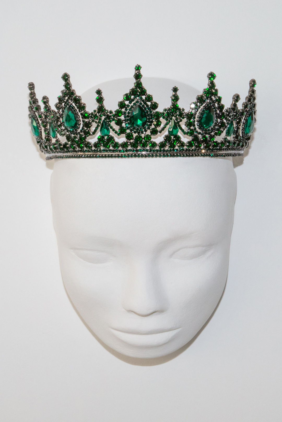 Χειροποίητη τιάρα μεσαίου μεγέθους από σμαραγδένιο κρύσταλλο σε σκελετό σταχτί.