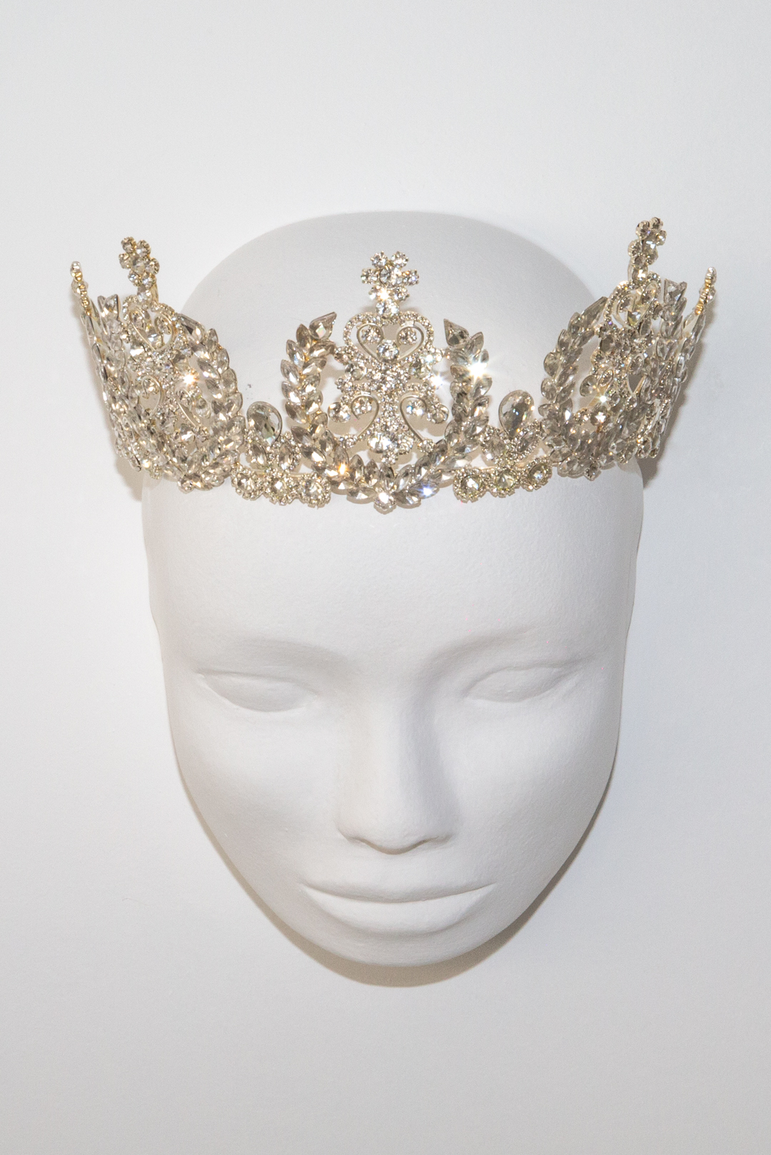 Ψηλή χειροποίητη τιάρα με διάφανα κρύσταλλα σε ασημί σμάλτο.
