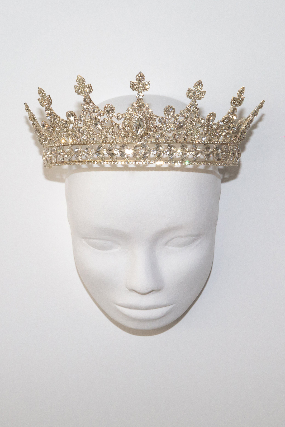 Ψηλή χειροποίητη τιάρα με διάφανα κρύσταλλα σε ασημί σμάλτο.