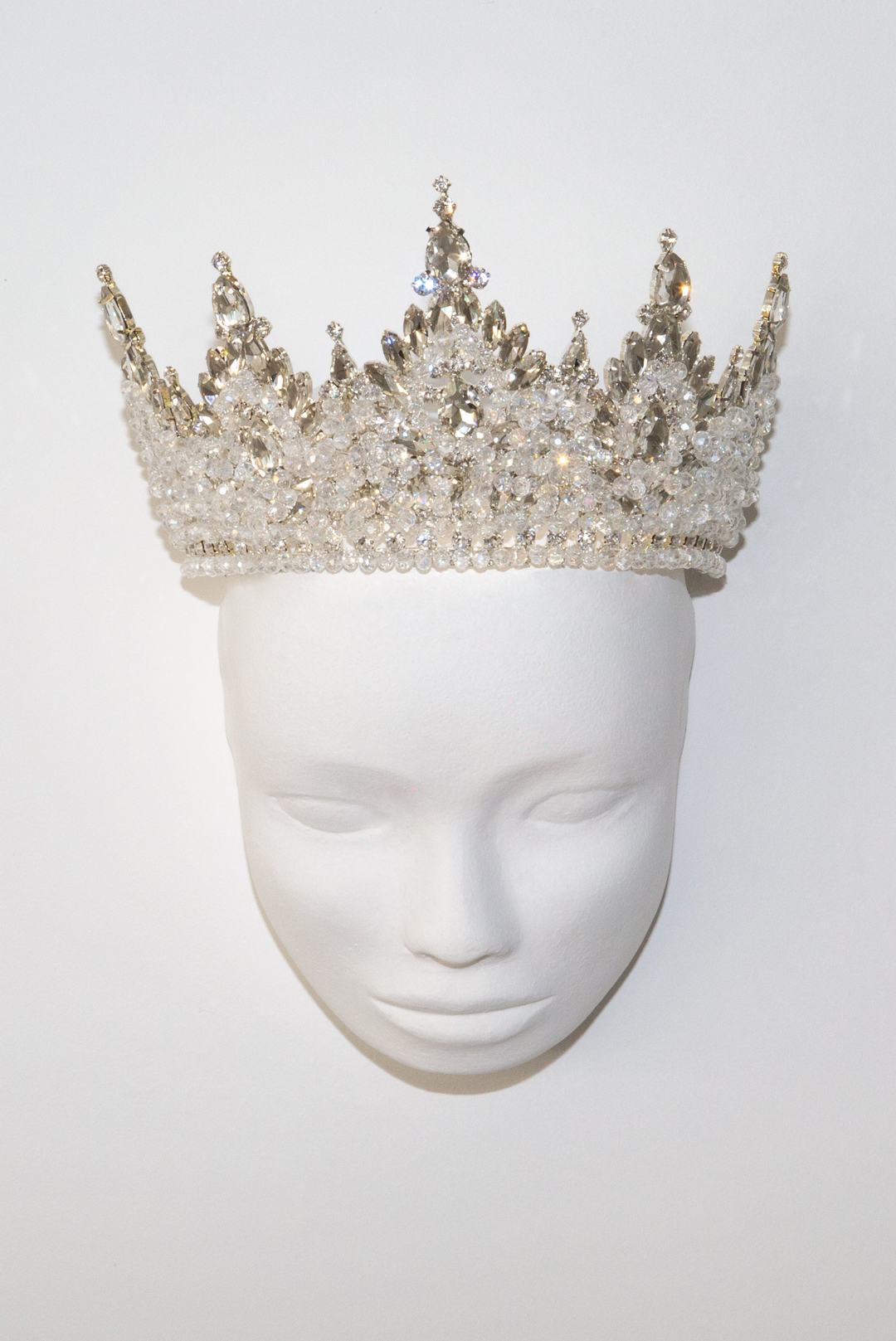 Ψηλή χειροποίητη τιάρα με διάφανα κρύσταλλα σε ασημί σμάλτο.