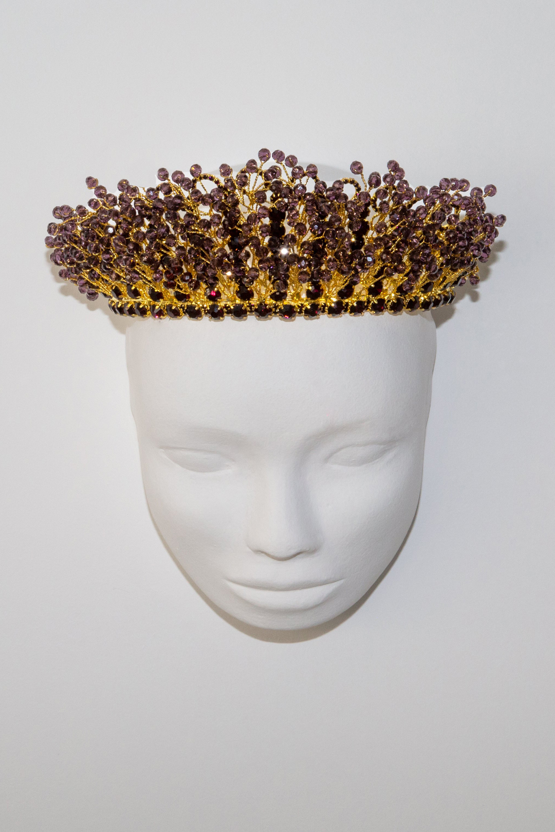 Ψηλή χειροποίητη τιάρα με μωβ κρύσταλλα, επίχρυση.