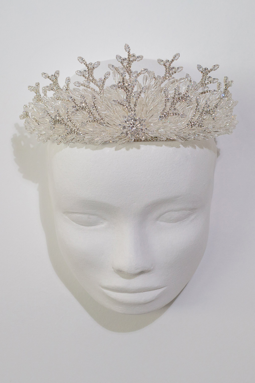 Ψηλή χειροποίητη τιάρα με διάφανα κρύσταλλα σε ασημί σμάλτο.