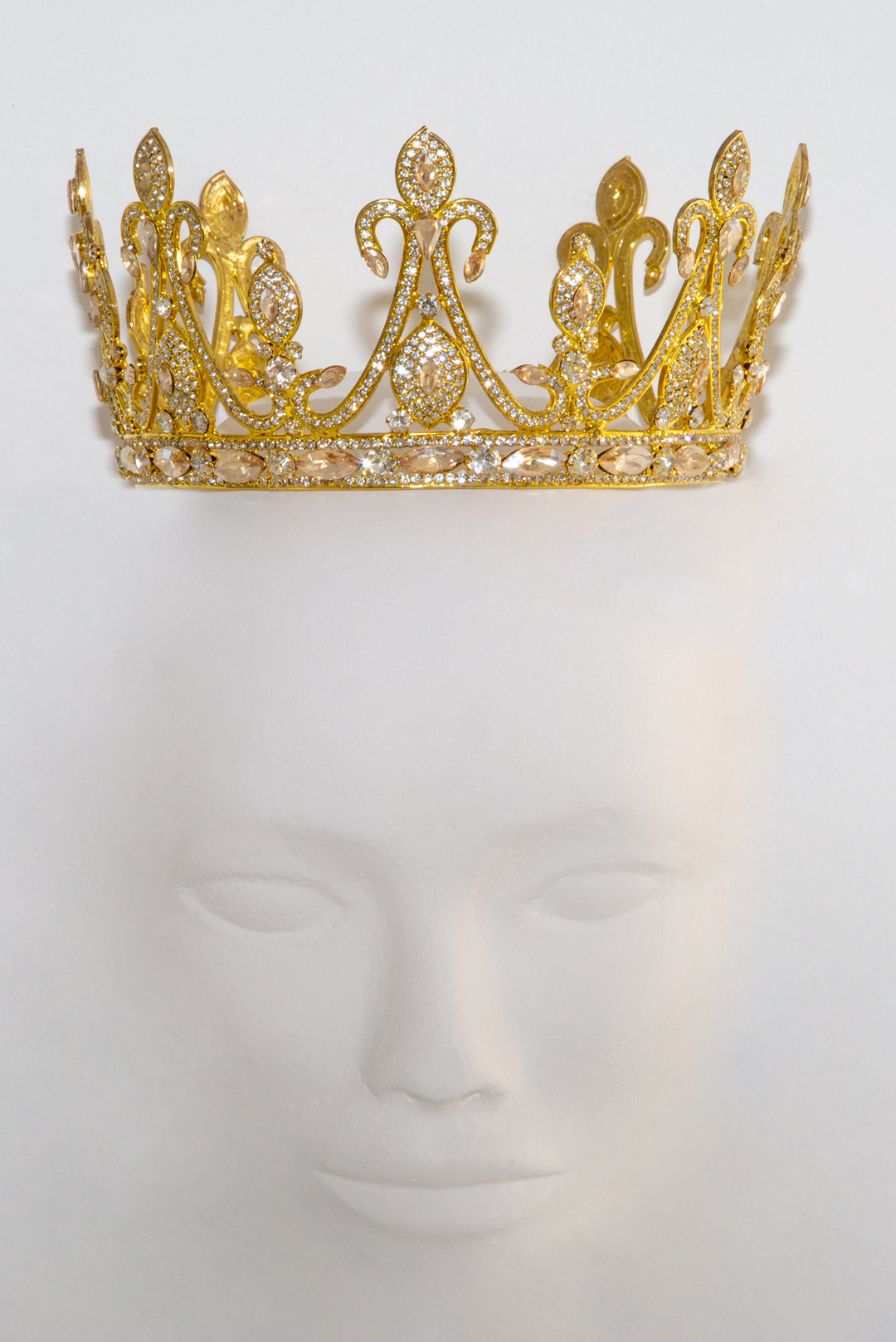 Ψηλή χειροποίητη τιάρα με διάφανα κρύσταλλα επιχρυσωμένα.