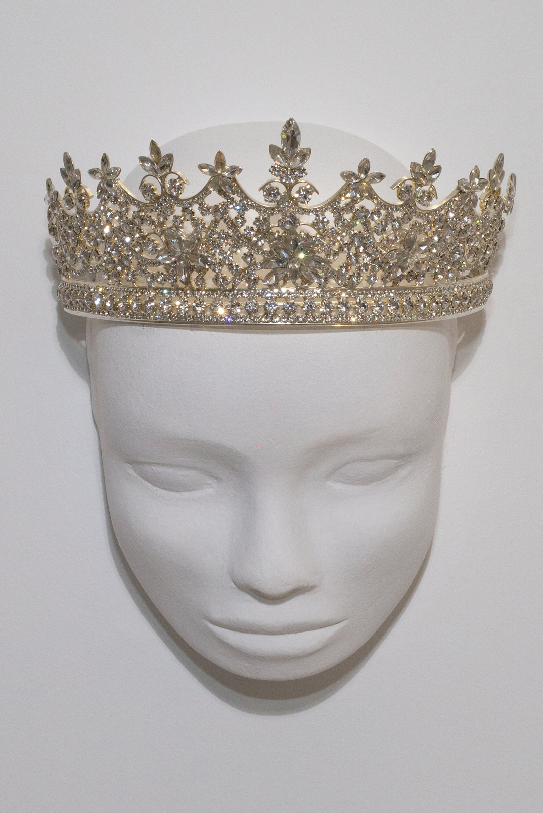 Ψηλή χειροποίητη τιάρα με διάφανα κρύσταλλα σε ασημί σμάλτο.