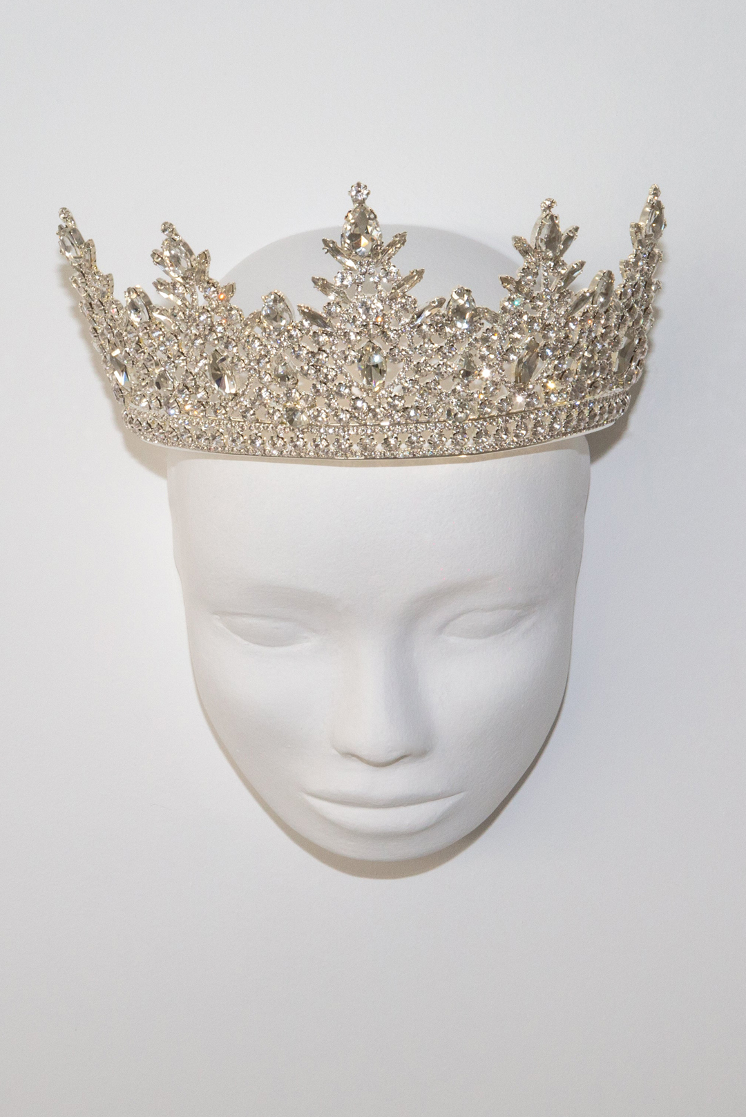 Ψηλή χειροποίητη τιάρα με διάφανα κρύσταλλα σε ασημί σμάλτο.