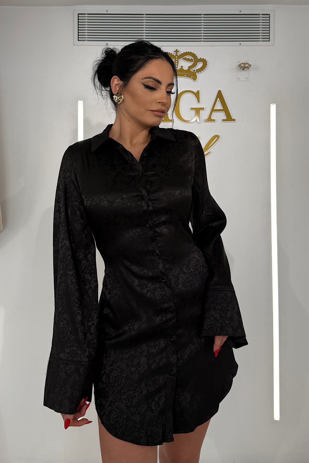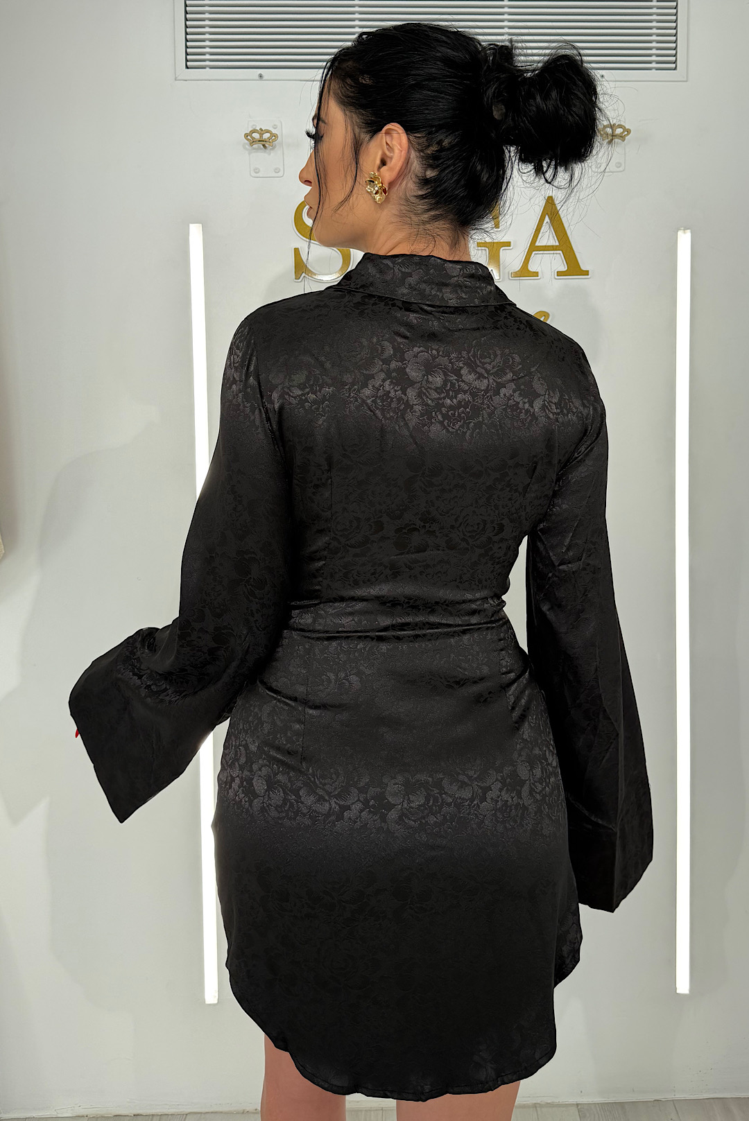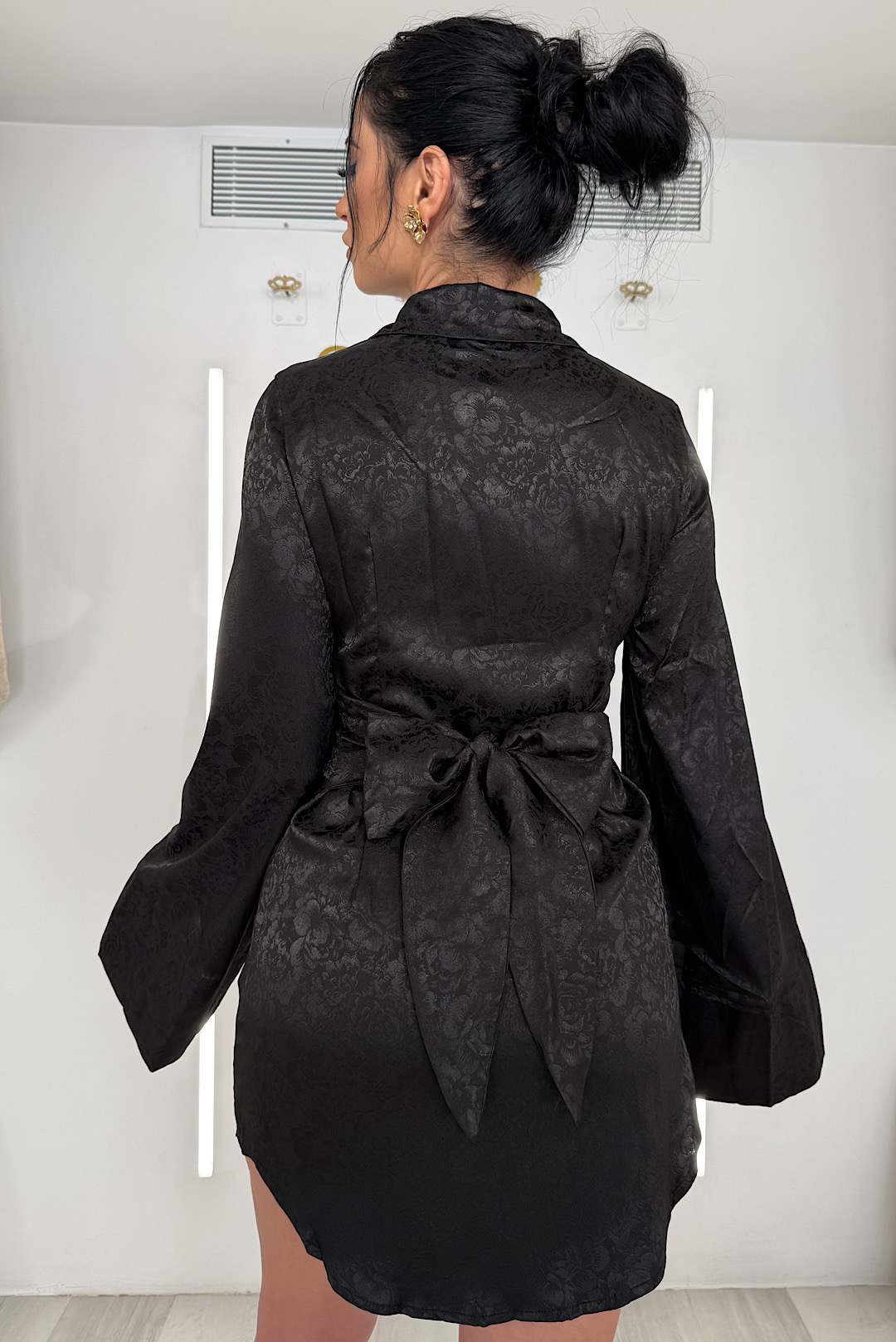 Πολυμορφική σατέν πουκαμίσα με ανάγλυφο φλοράλ σχέδιο που δένεται με διάφορους τρόπους .