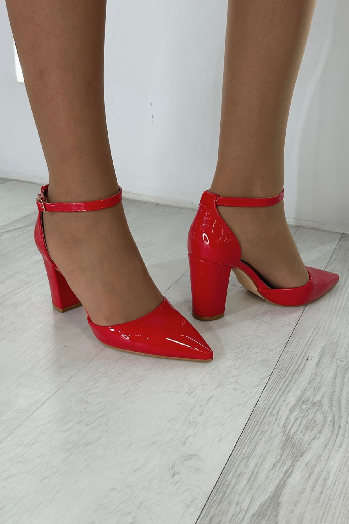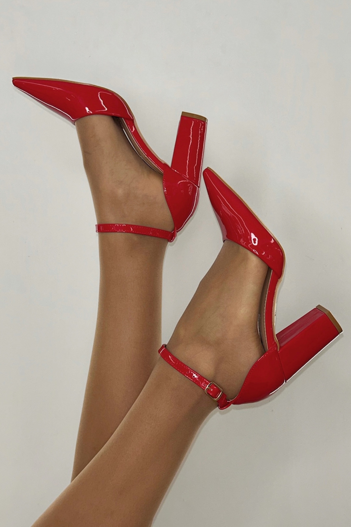Ένα άνετο λούστρινο τακούνι σε μπέζ ,κόκκινο, ρόζ και γαλάζιο χρώμα