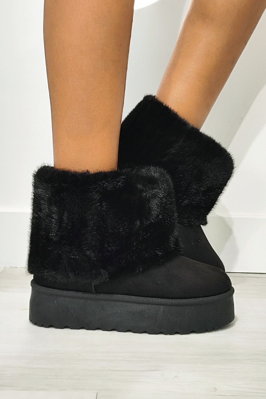 Μποτάκια με γουνάκι σε χρώματα χακί, μαύρο και camel