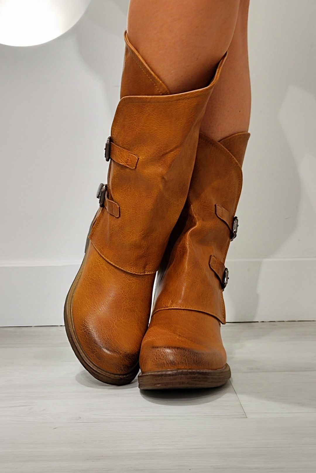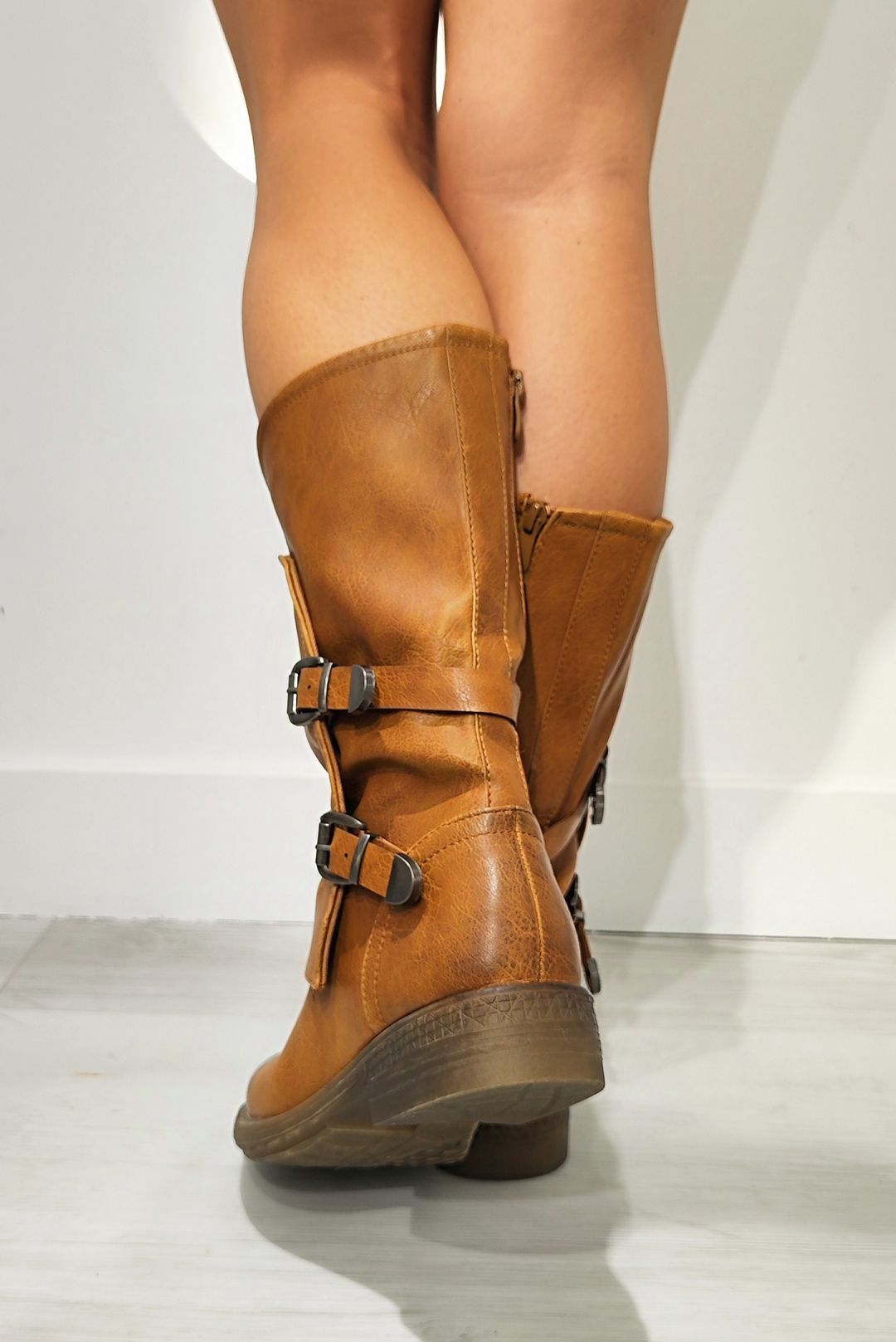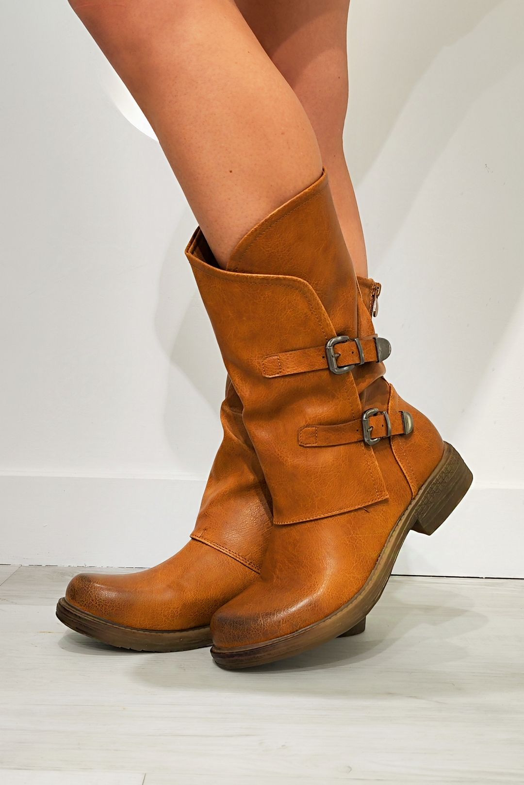 Μπότες σε δερμάτινη σε χρώματα τζίν, μαύρο και camel.