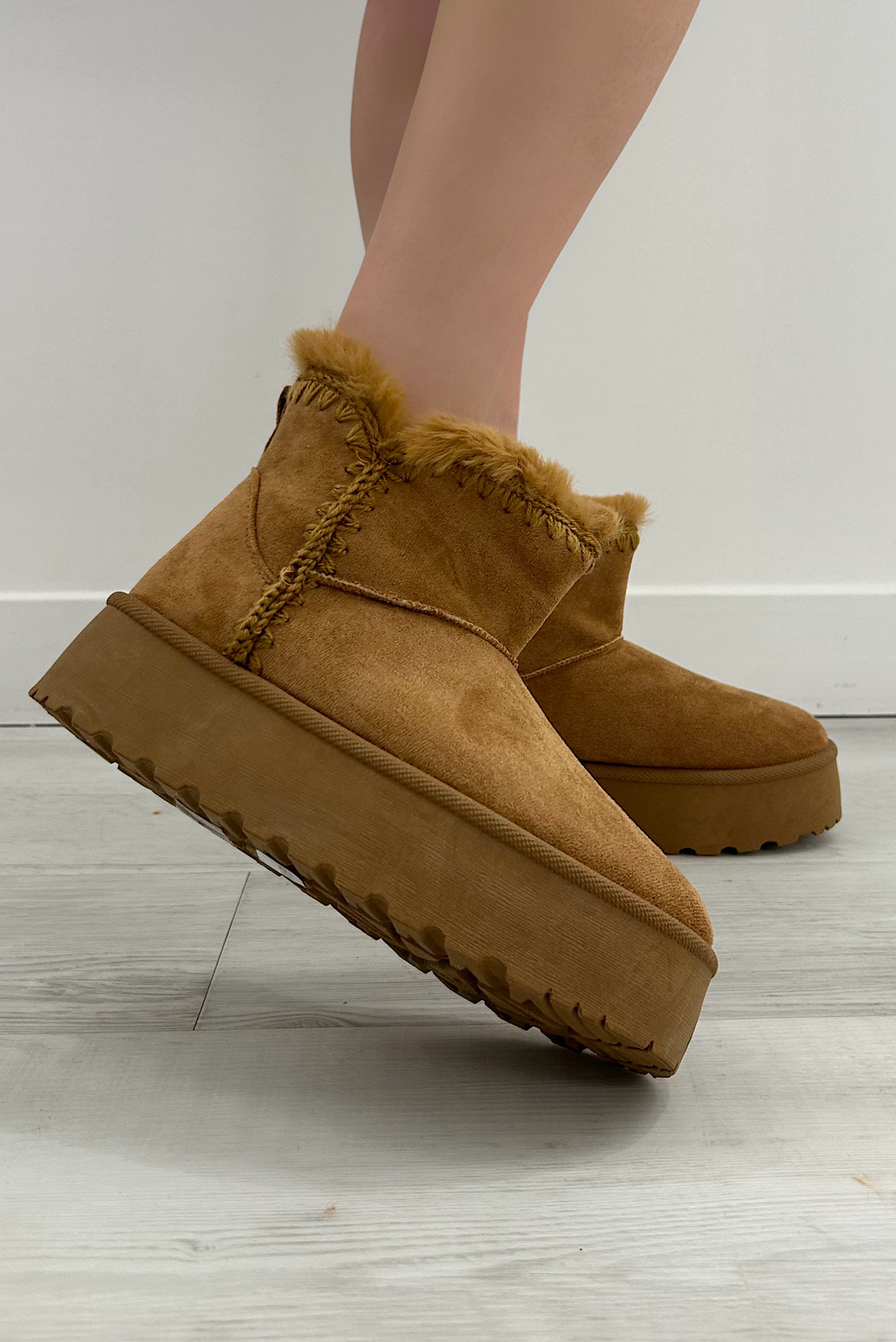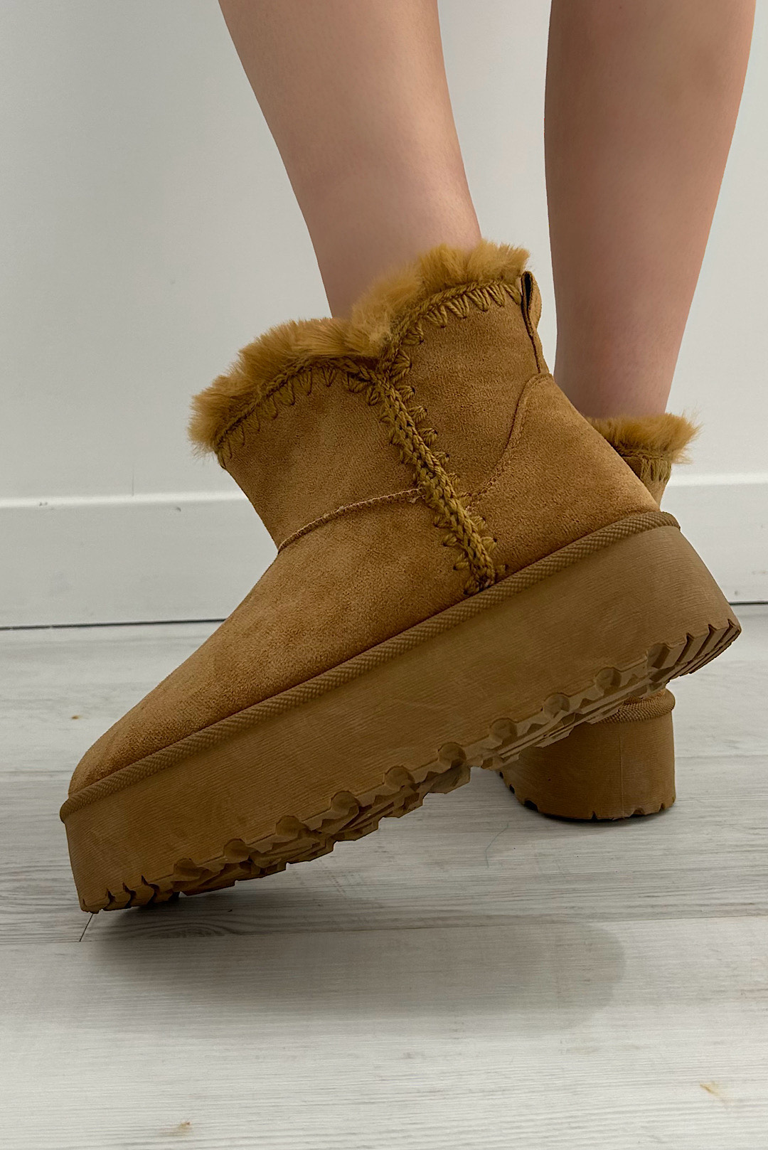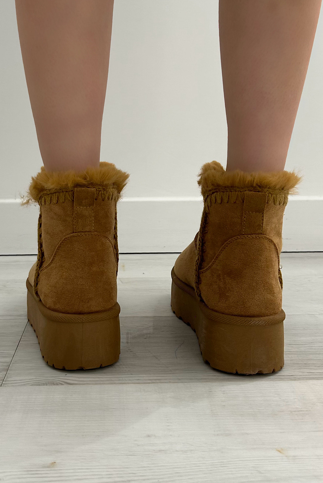 Μπότες με εσωτερική faux γούνα σε εκρού και καφέ χρώμα