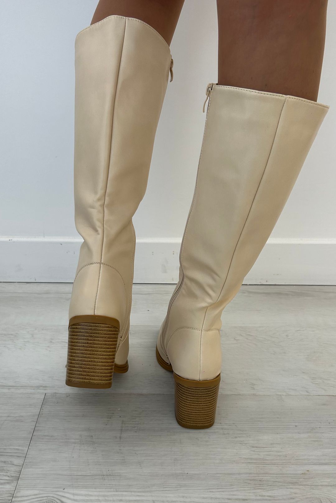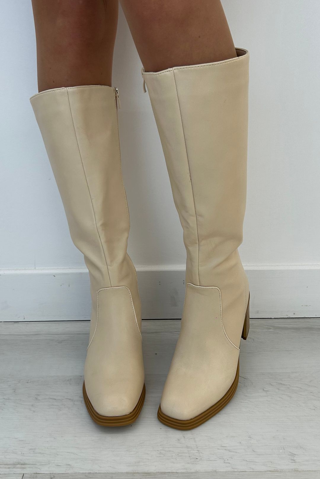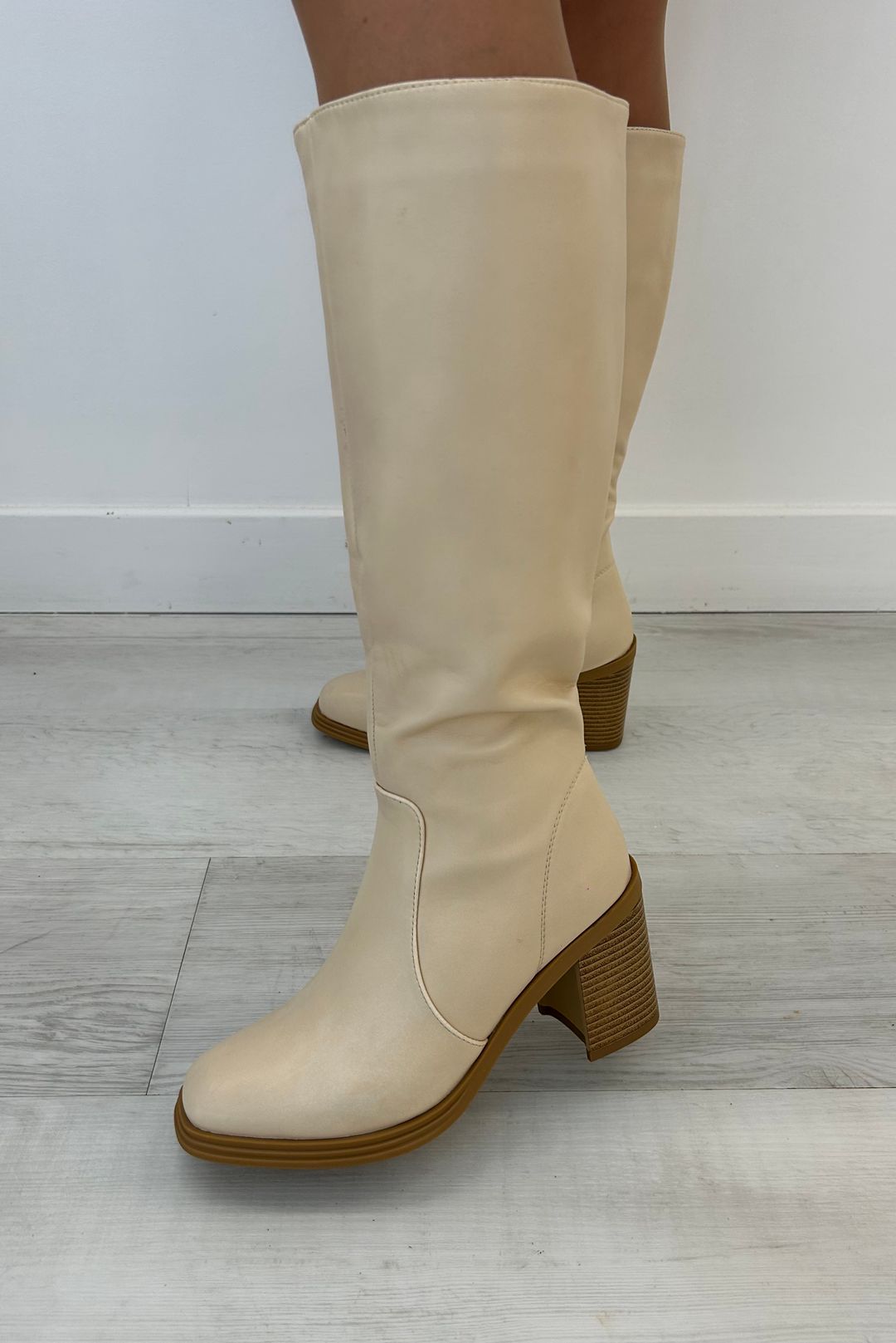 Μπότες σε άσπρο και μπέζ χρώματα.