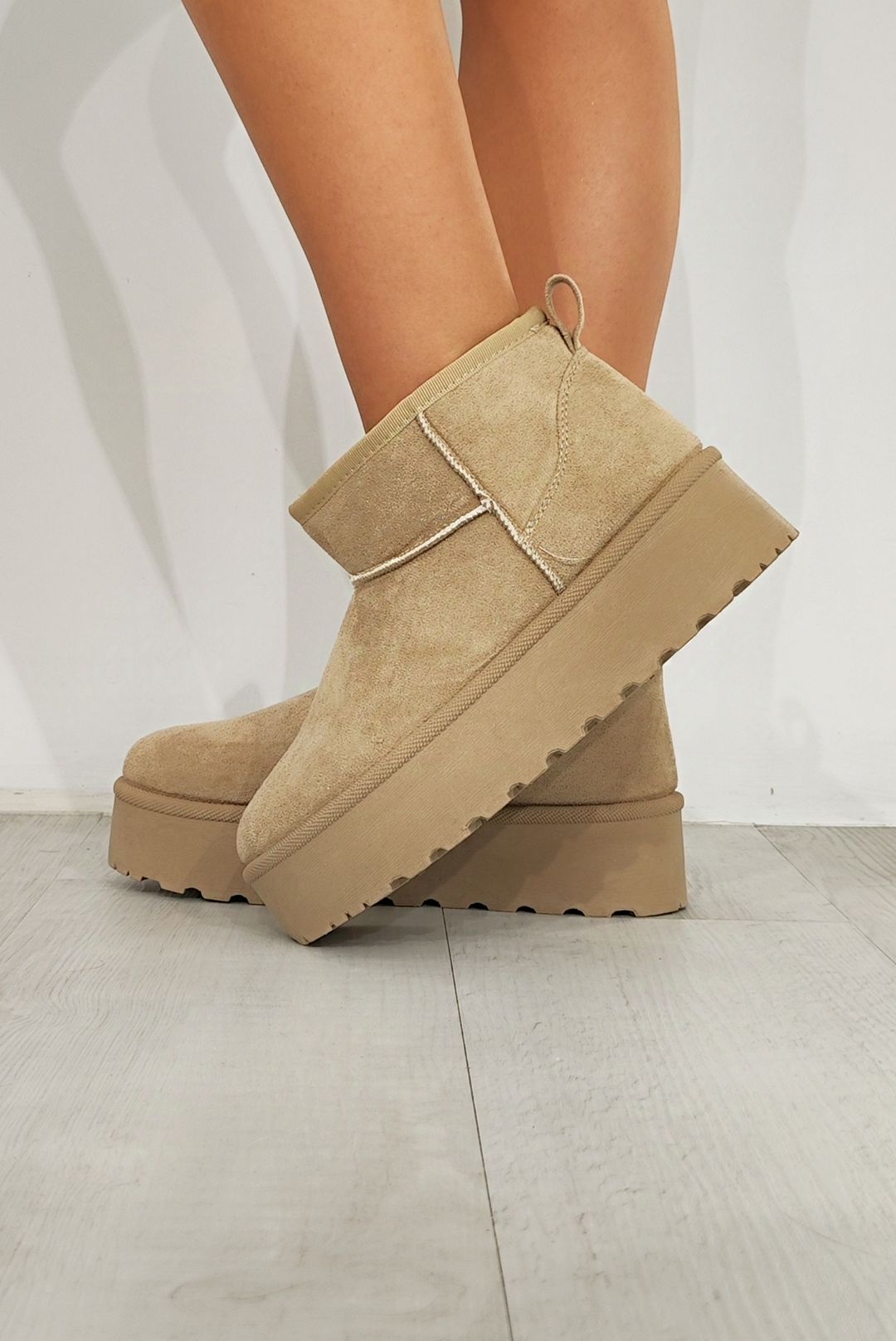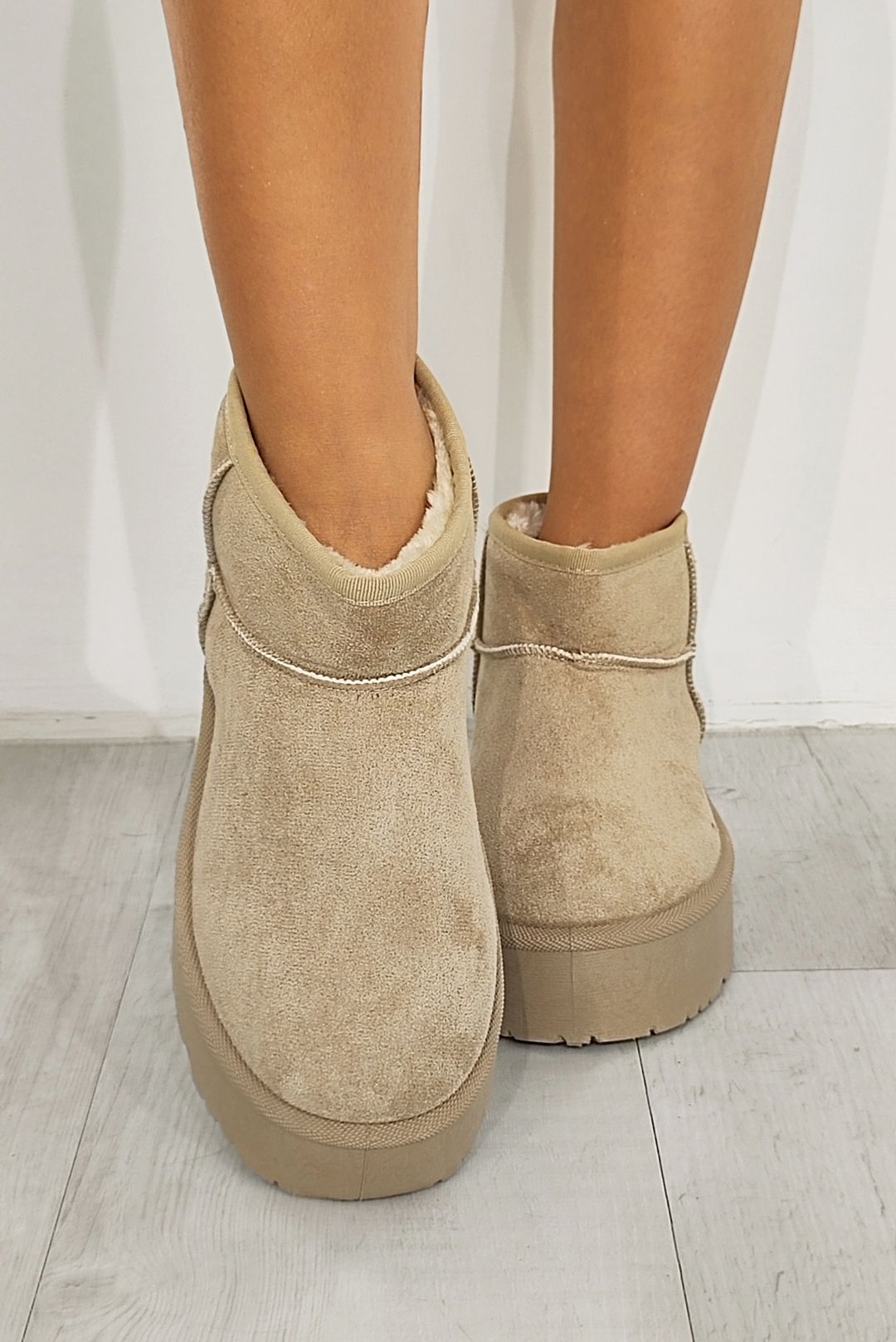 Χαμηλά μποτακια με γουνάκι σε μαύρο χακί και μπέζ χρώματα.