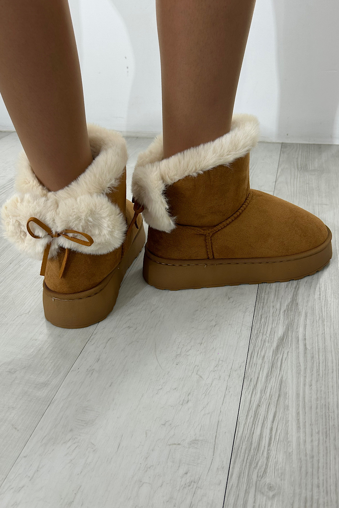 Μποτάκια σε μπέζ , κάμελ  και μαύρο χρώμα με συνθετική γούνα στο εσωτερικό και με φιόγκο στο πίσω μέρος