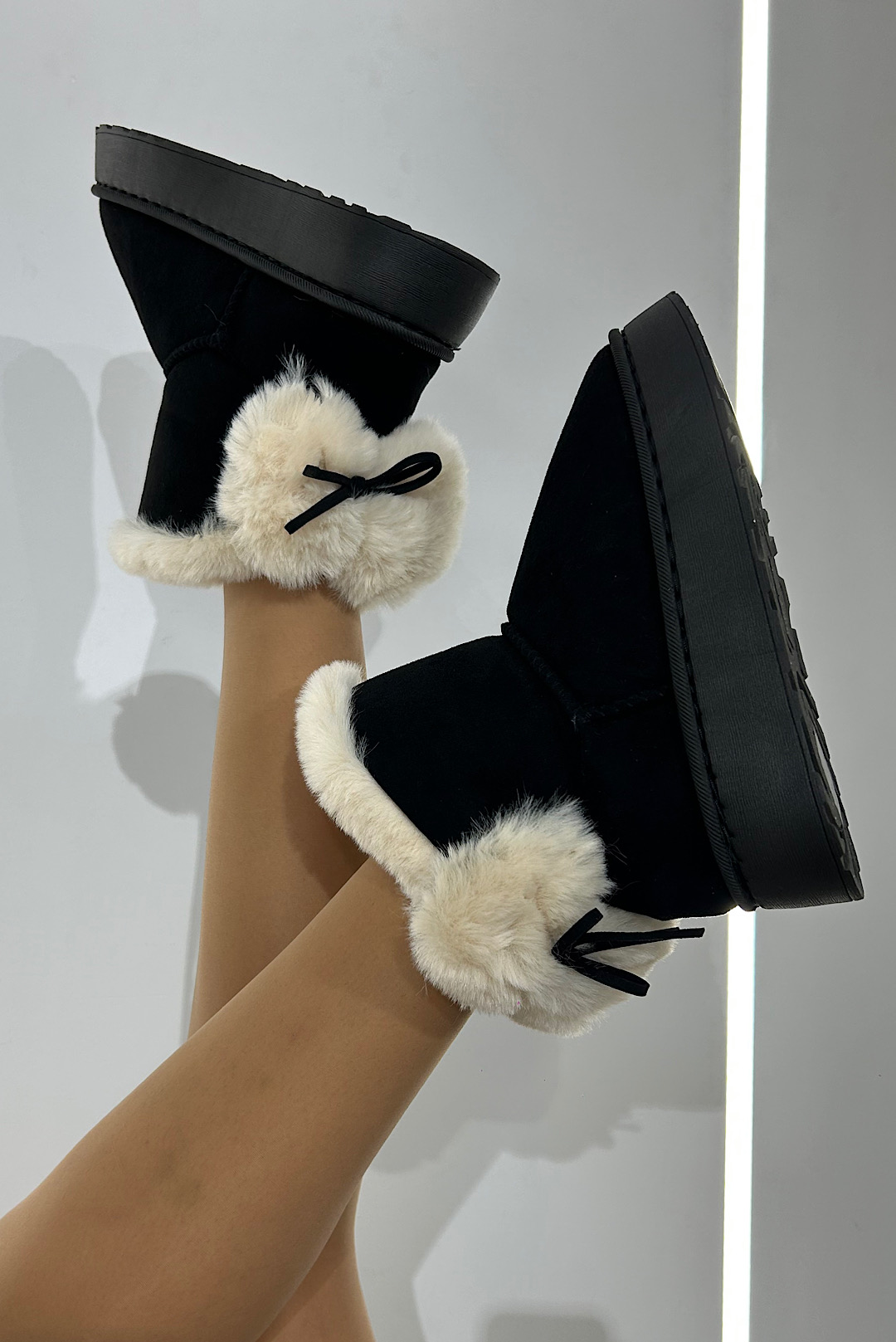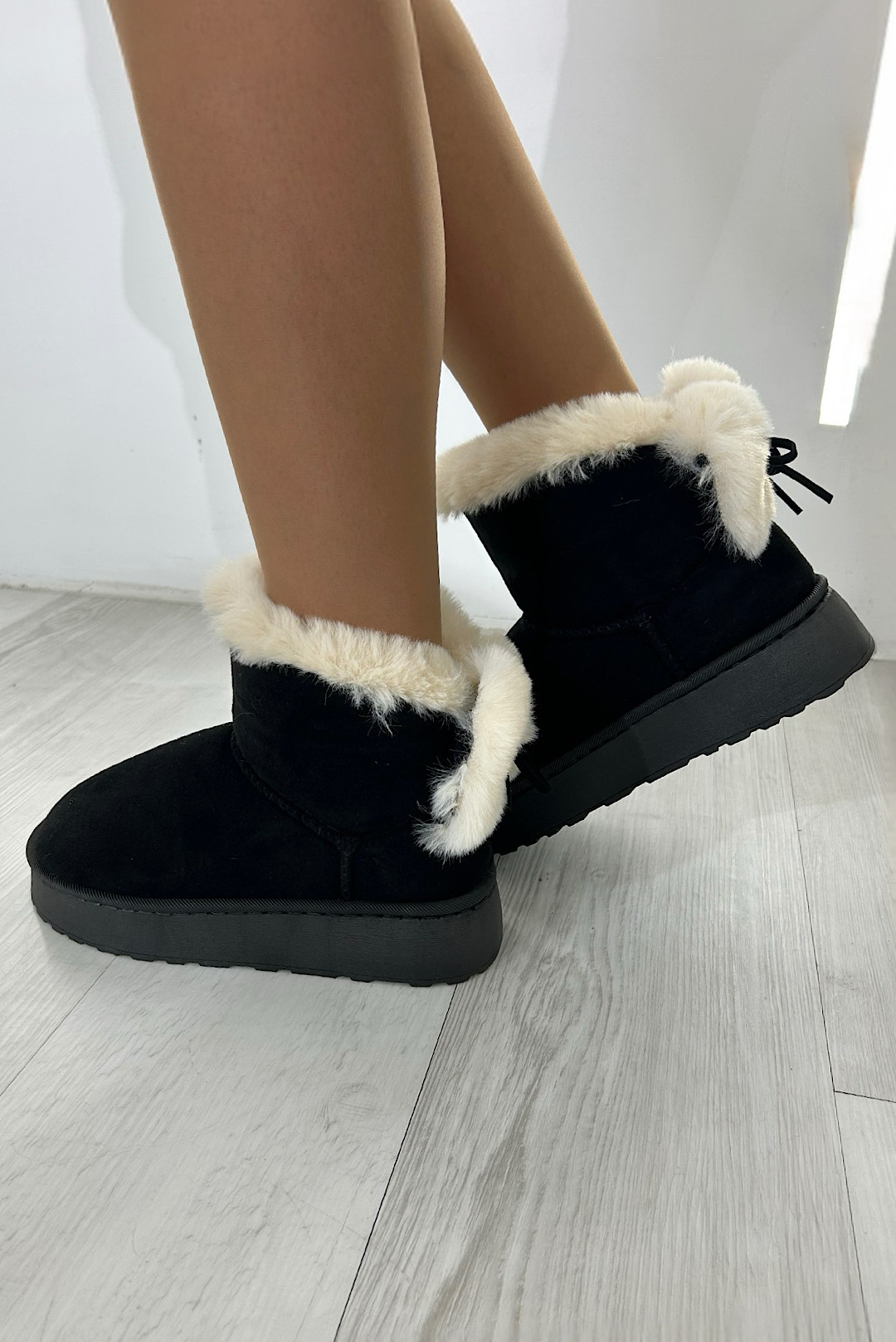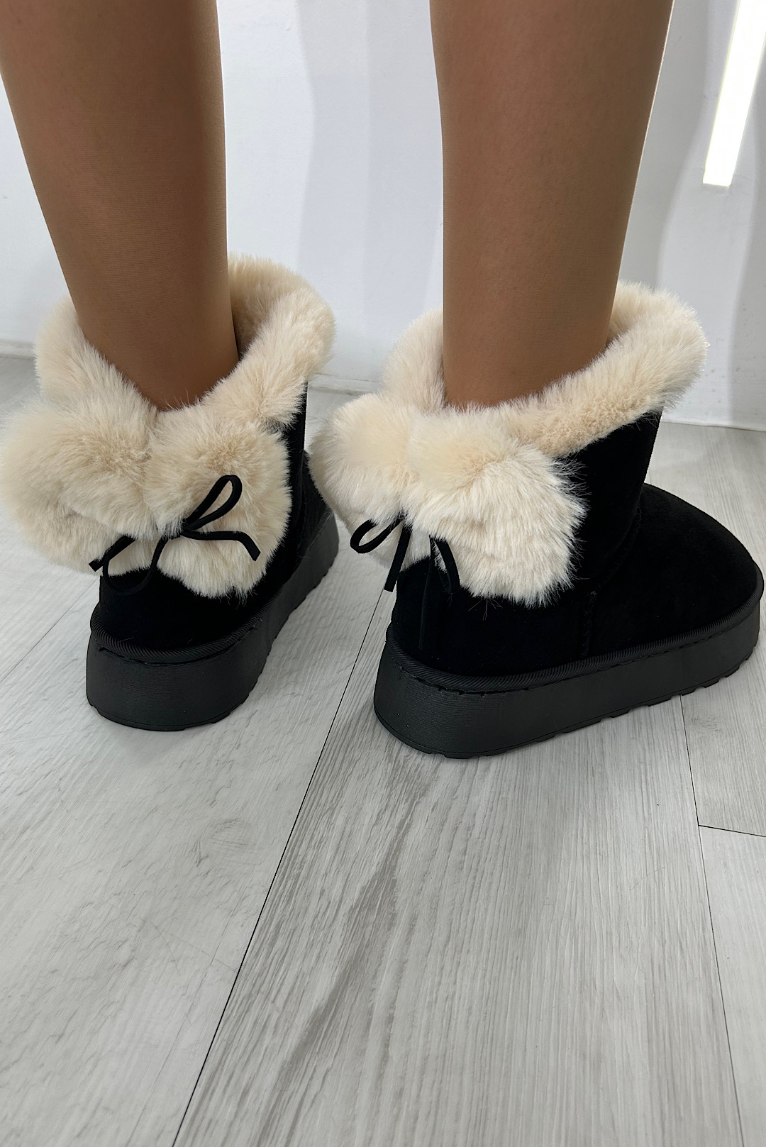 Μποτάκια σε μπέζ , κάμελ και μαύρο χρώμα με συνθετική γούνα στο εσωτερικό και με φιόγκο στο πίσω μέρος