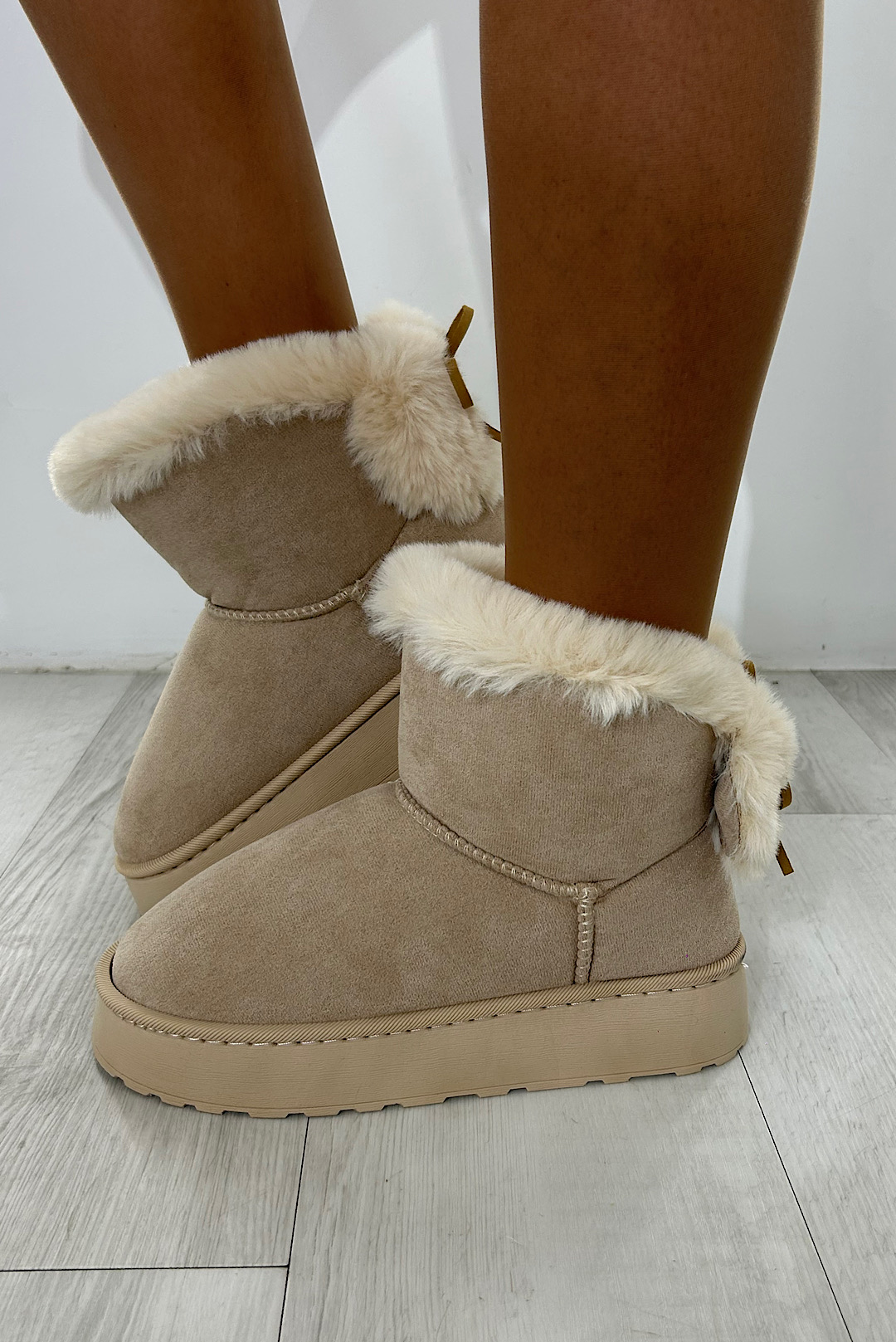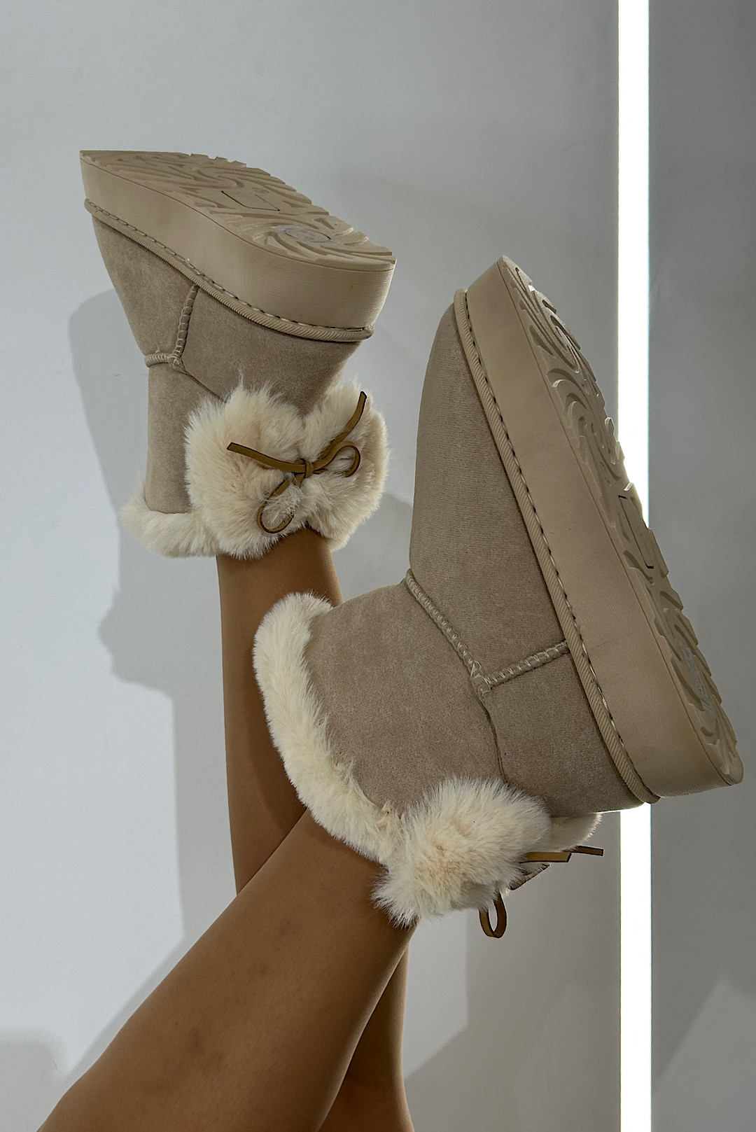 Μποτάκια σε μπέζ , κάμελ και μαύρο χρώμα με συνθετική γούνα στο εσωτερικό και με φιόγκο στο πίσω μέρος