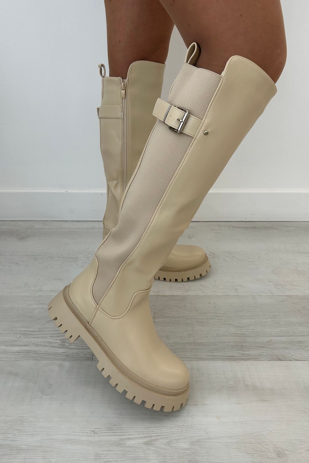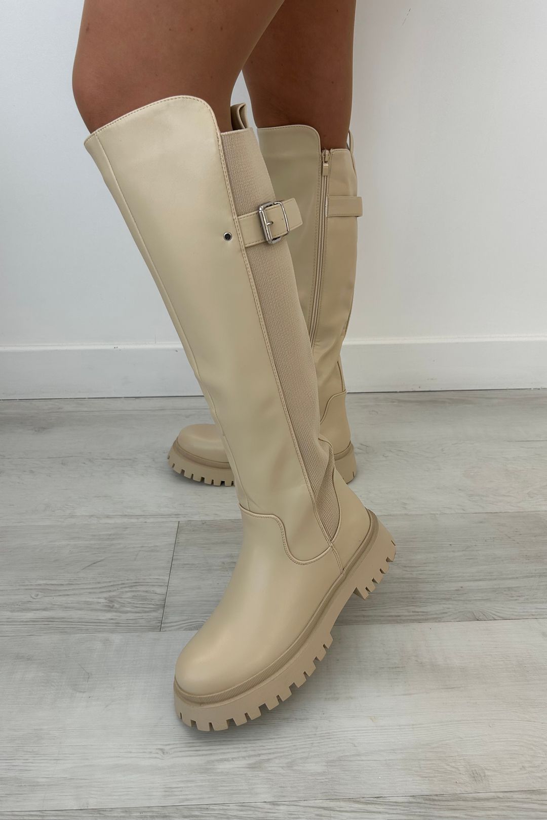 Μπότες σε μπέζ χρώμα.