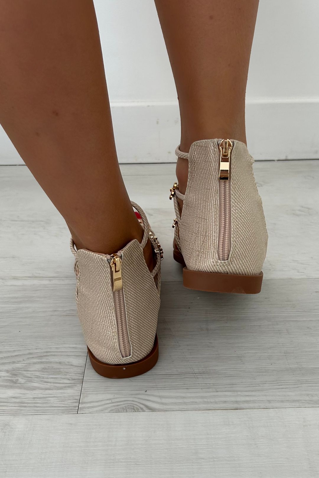 Σανδάλια σε μαύρο και μπεζ χρώματα.