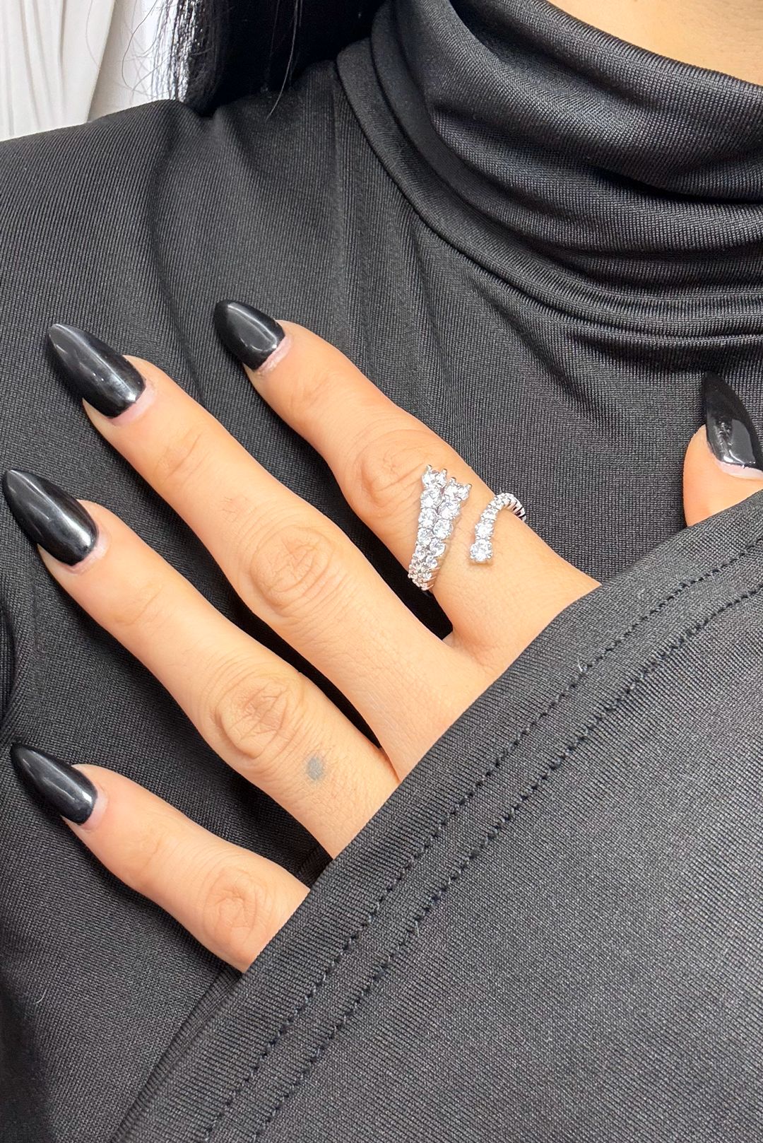 Ρυθμιζόμενο δαχτυλίδι με VVS1 κυβική ζιργκόνια με στρογγυλές πέτρες και δεμένο σε ασήμι 925.
